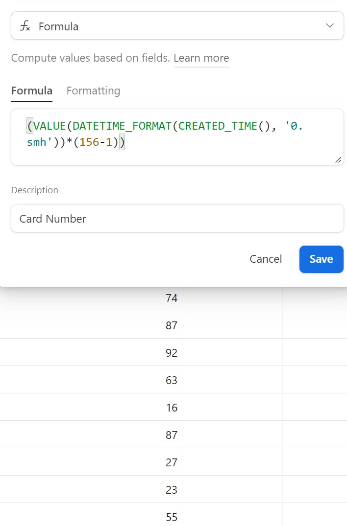First: I have a formula that return a number between 1-156 based on the created time of a record: