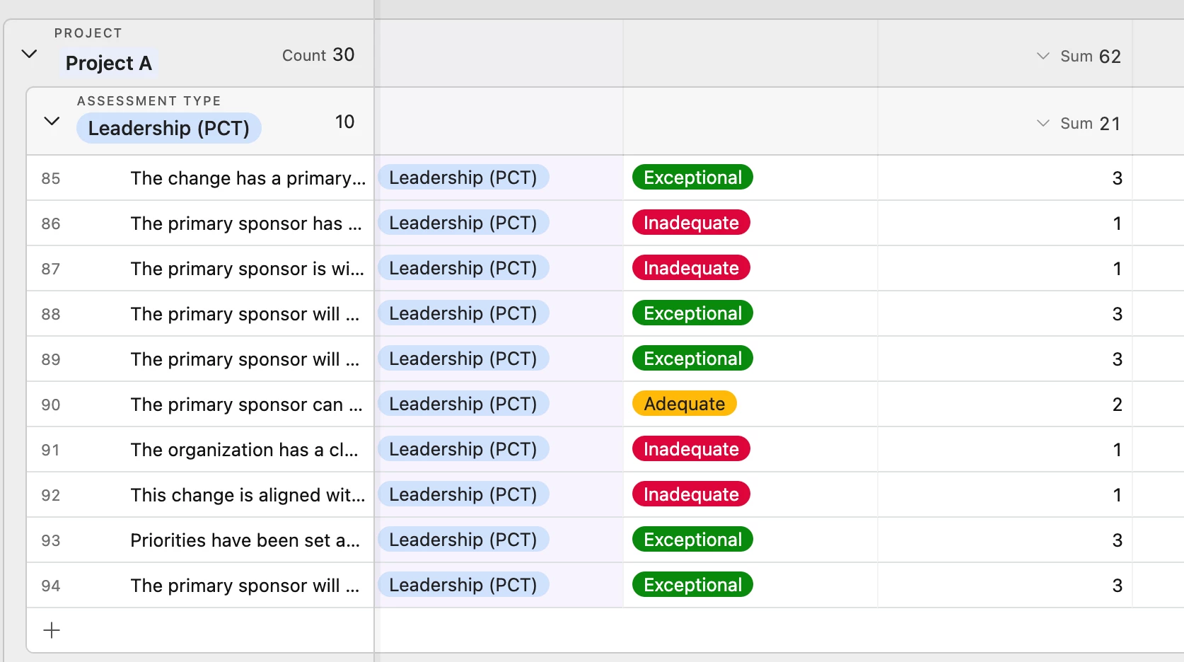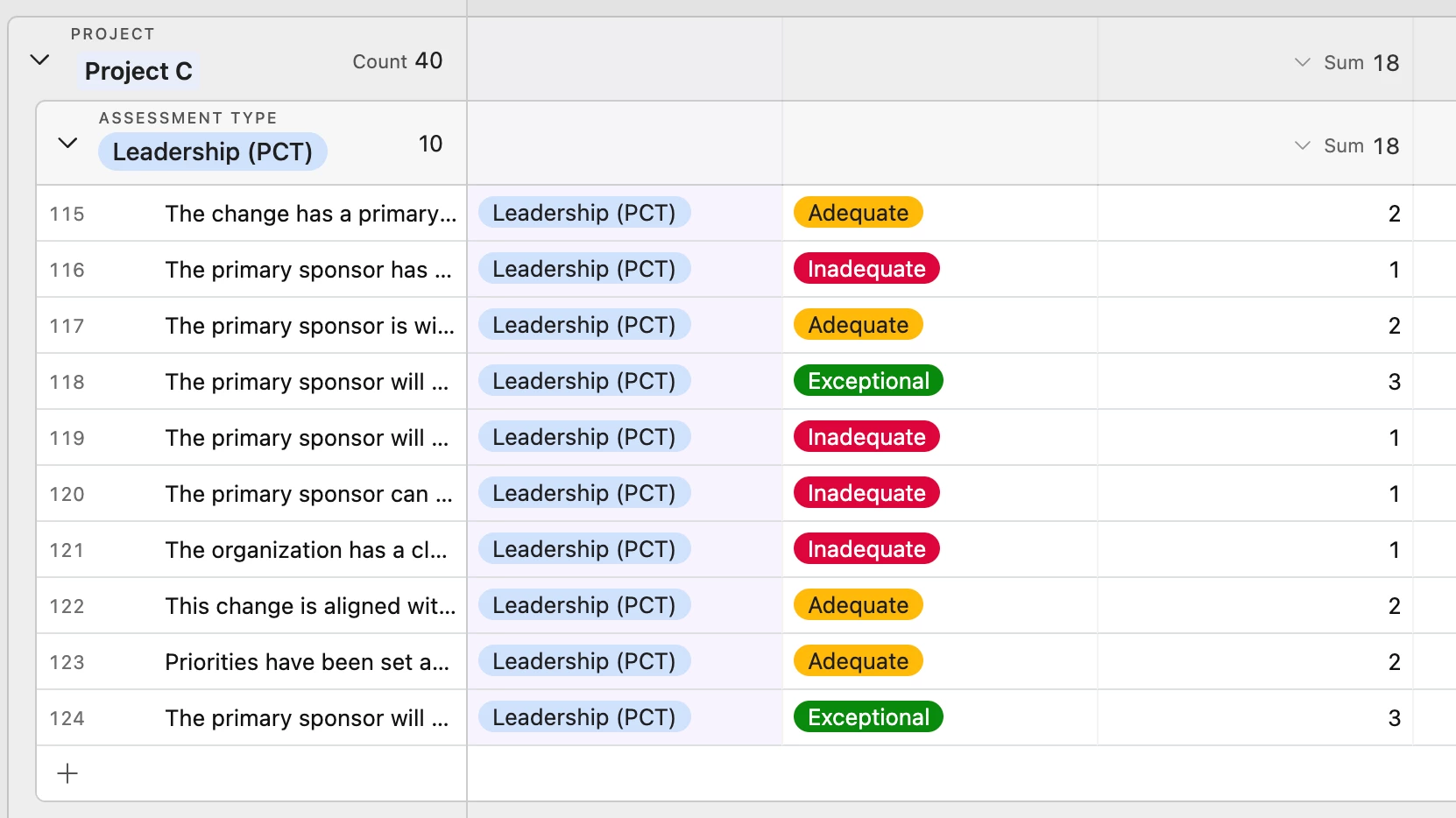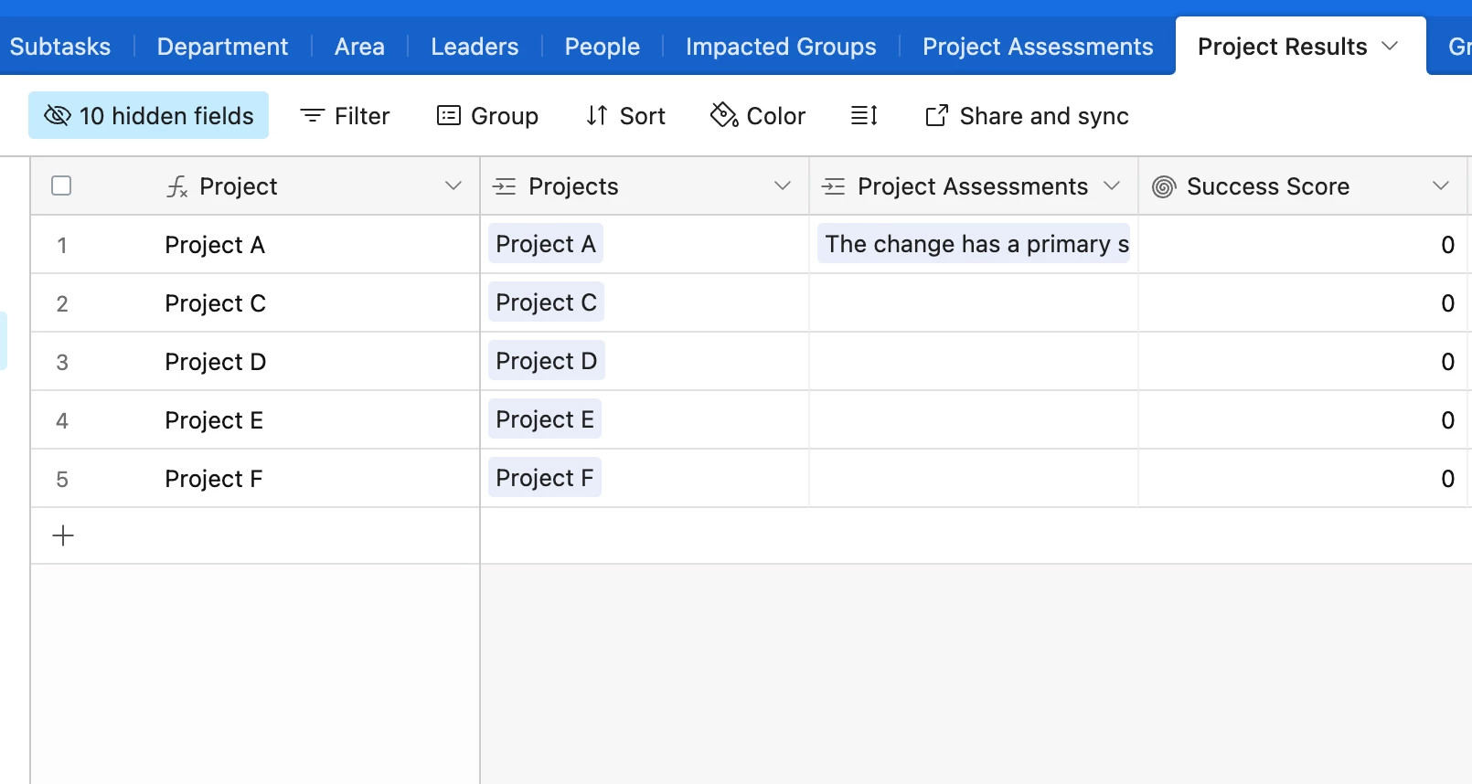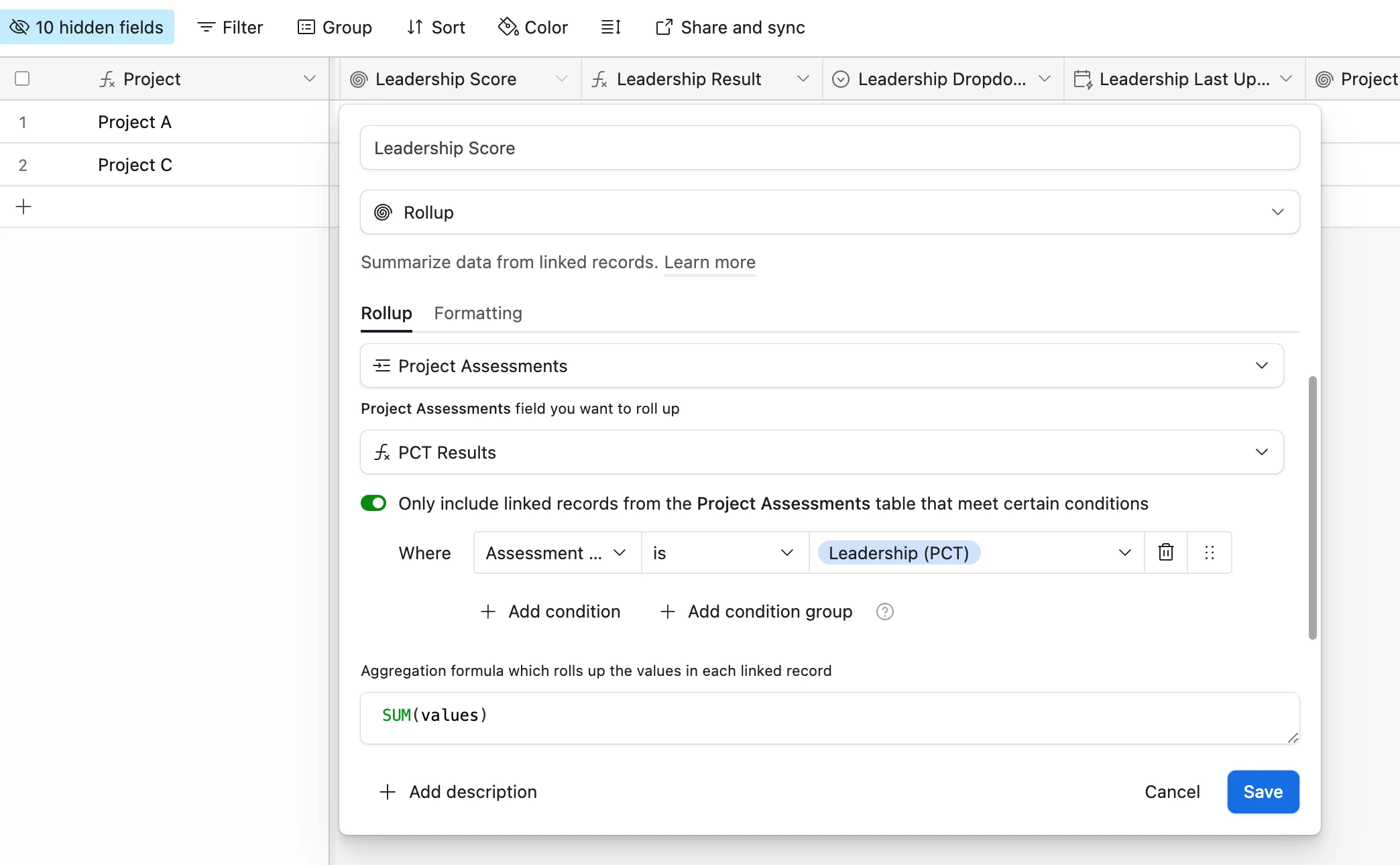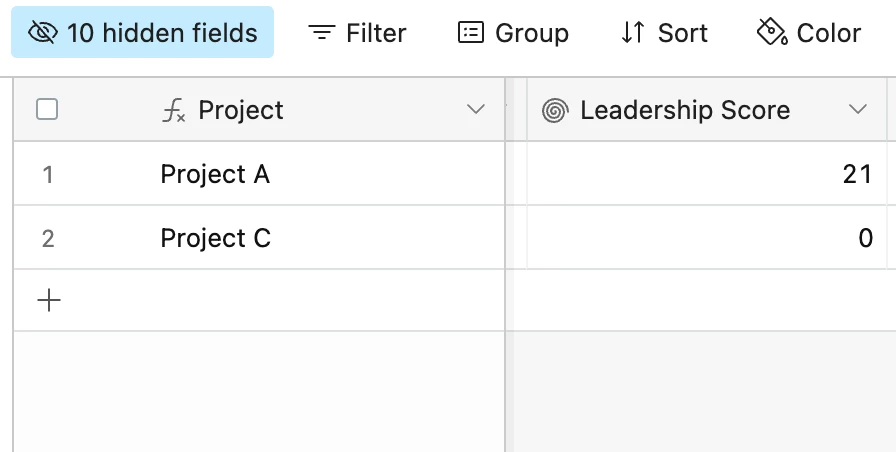 I created a rollup field for my leadership score column but it only is showing the sum of one of the projects (project A) and not the other (project C).
