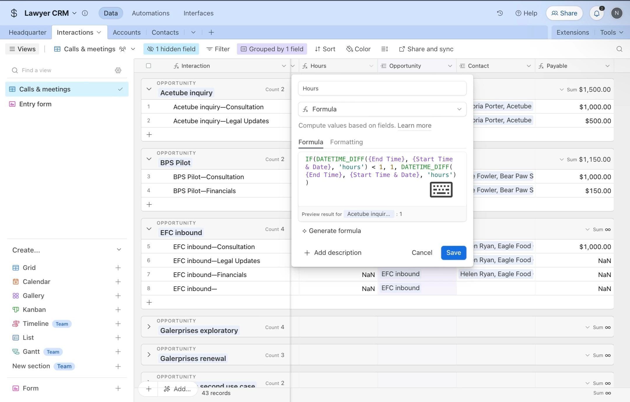 1. How do I setup the “Hours” formula field such that even if its 10 mins more than a perfect hour it will round it off to 2 hrs and so on for any more amount of time.