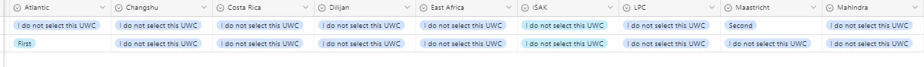I would like to create the individual columns "First" "Second" "Third" "No preference" and have the answers filter into these columns (rather than having all 15 individual columns open).
