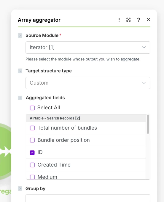 Array aggregator to consolidate the Search Records results