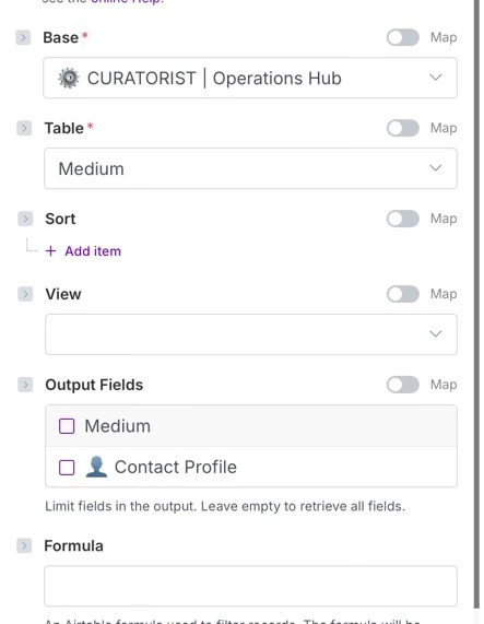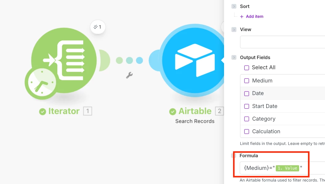What’s the correct formula syntax in Make’s Airtable module to achieve this?
