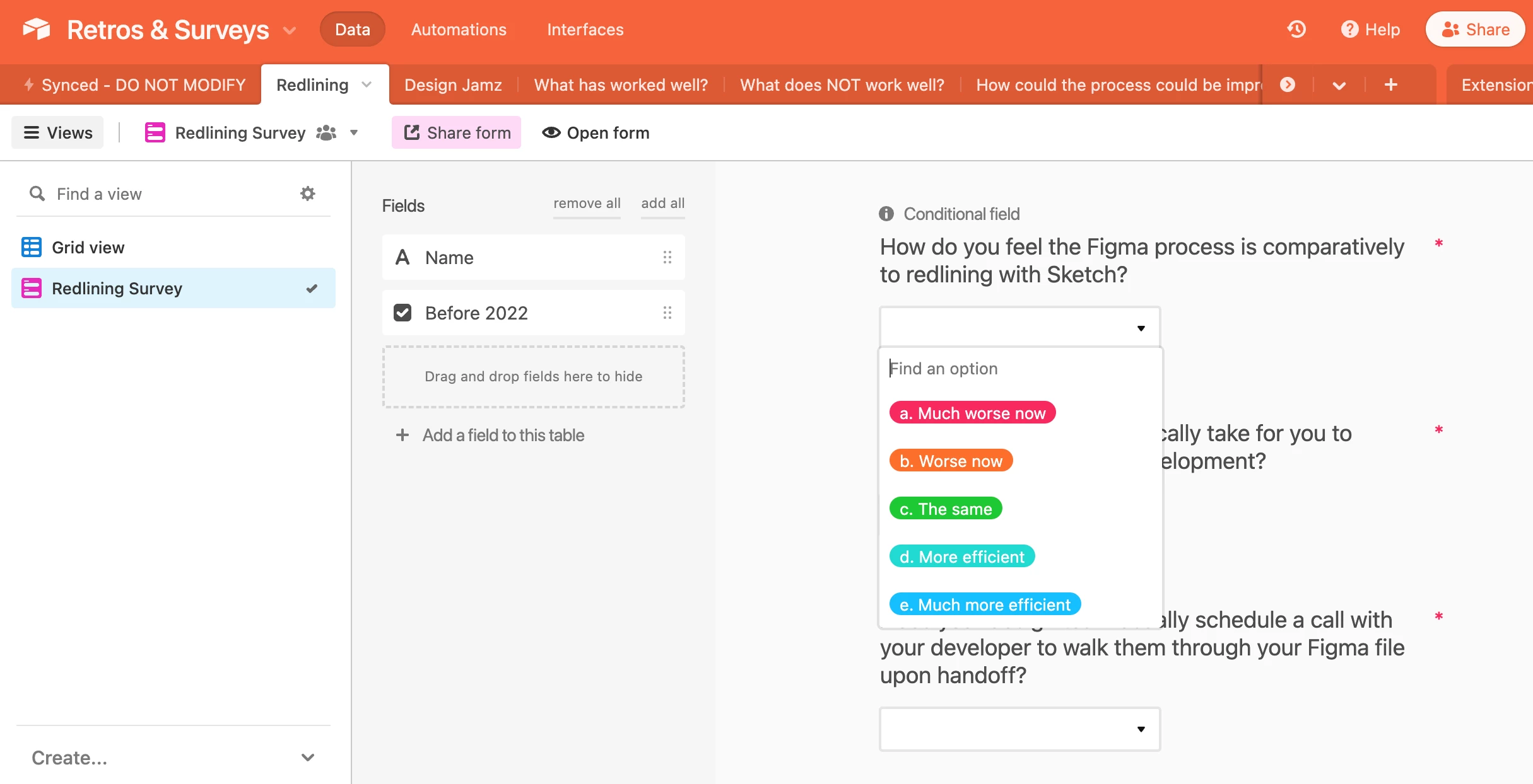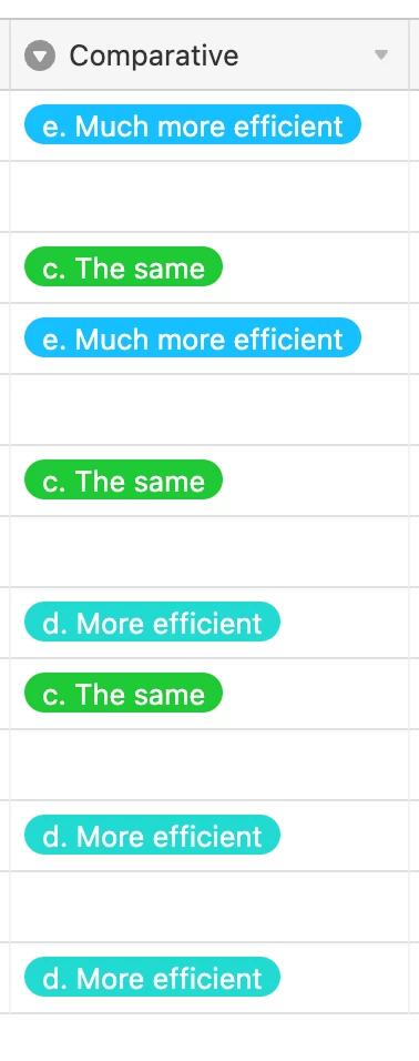 I'm looking to show the percentage of improvement since the implementation of our new Figma redlining process from our team survey. Right now, 5/8 people say the process has either improved or greatly improved! Is it possible to show this in Airtable's Interface? Either as 5/8 or 63%? Participants will continue to add to this survey in the coming weeks. So, I need a create a formula that will update the Interface accordingly.