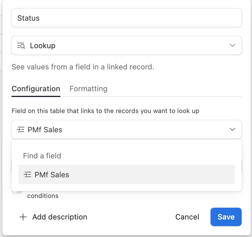 2). When I try a look-up table, it only gives me the option of selecting one tab {PMf Sales} but not the other tabs.