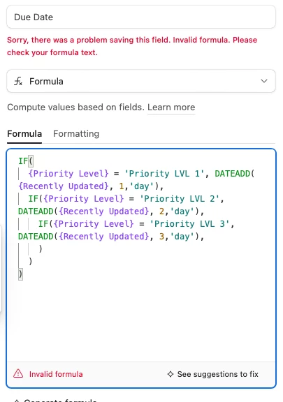 My workflow is based on priority levels, so I'm trying to create a "Due date" field based on the last time a record was updated.
