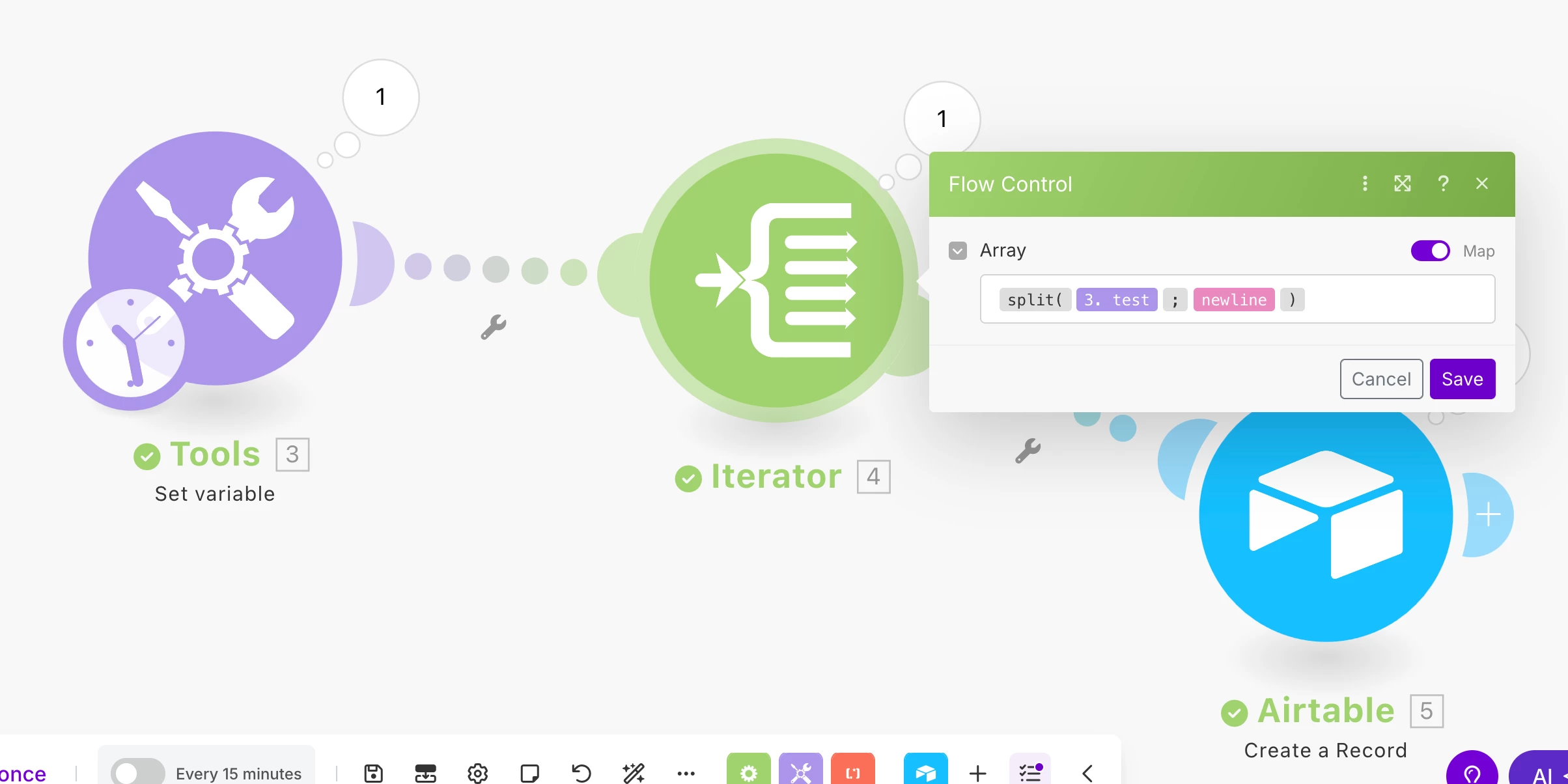 I want to transform a ChatGPT output (30 words/names) into a multi-line column (30 lines) in Airtable. I'm using Make as my automation engine and its Iterator module. I'm having trouble finding the right array formula