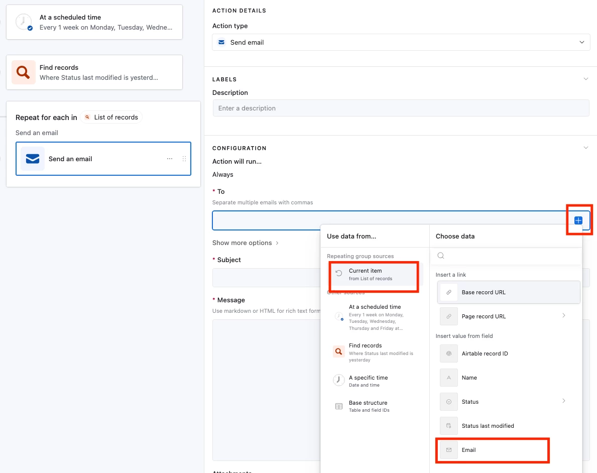 I am trying to set up an email automation that sends an email the next day at 9am after a status change. I have created a formula field: IF(