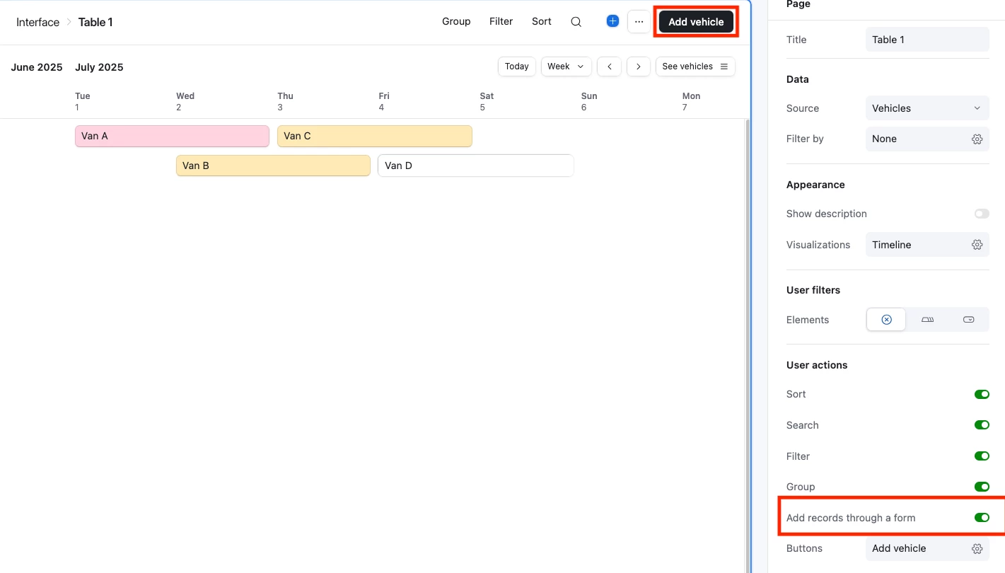 I am not able to + icon in timeline view, even though Add / Delete record button is enabled. Can anyone please suggest the look around?