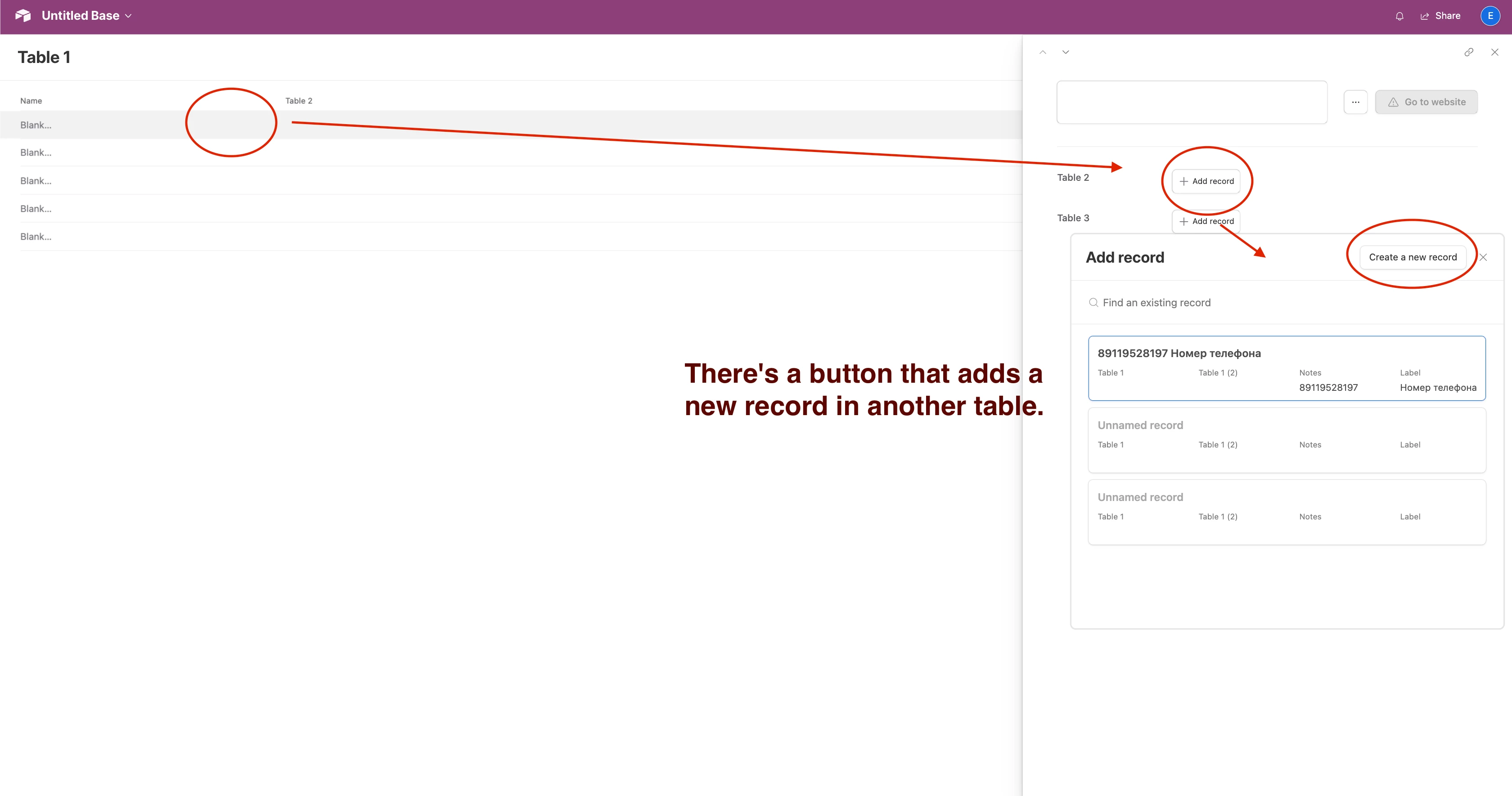 When I click "create record" and want to enter data that I don't have in another table, I want to see a button to create a new record, but I don't have it and I don't know how to make it.