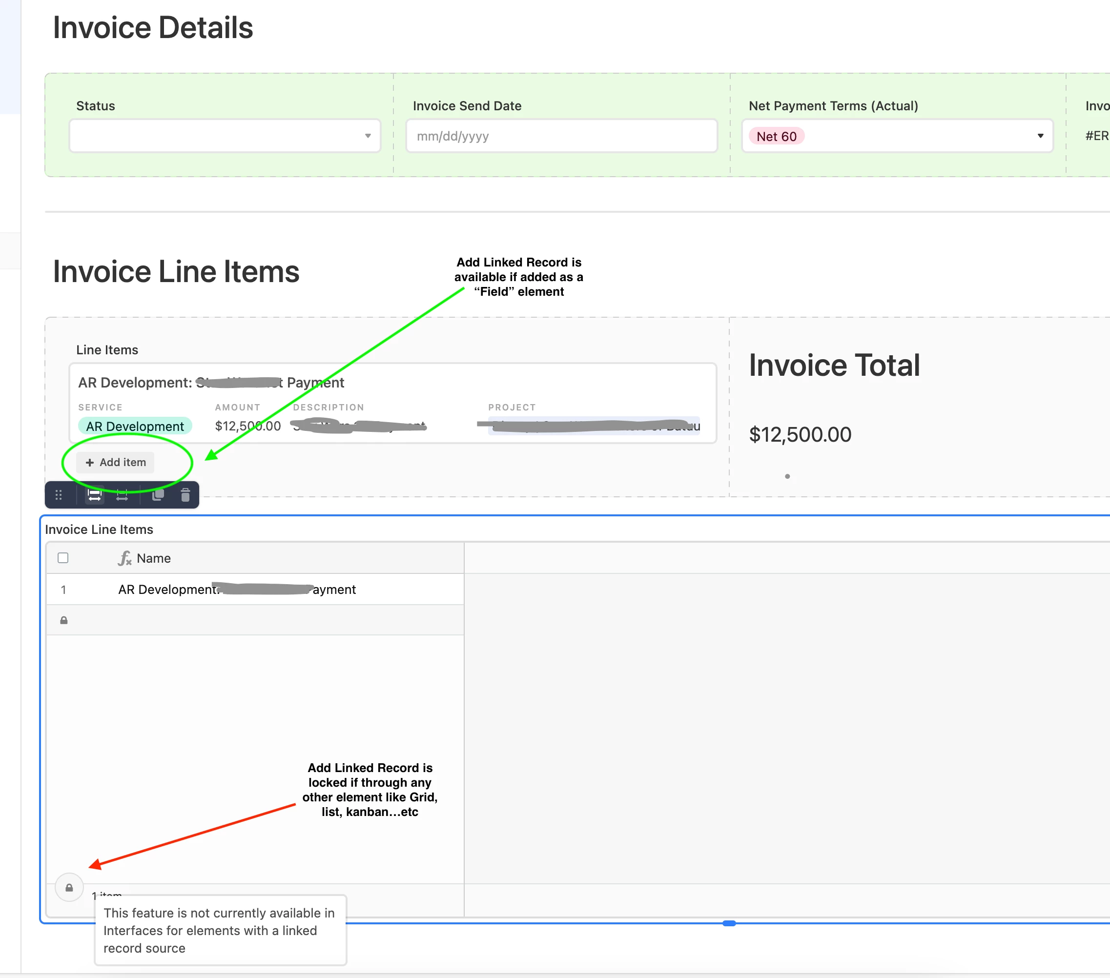 When you add an element like a list, kanban, grid...etc that shows linked records, I want to filter those linked records by the main parent record, AND have the ability to add new linked records to parent record through one of these element layouts.
