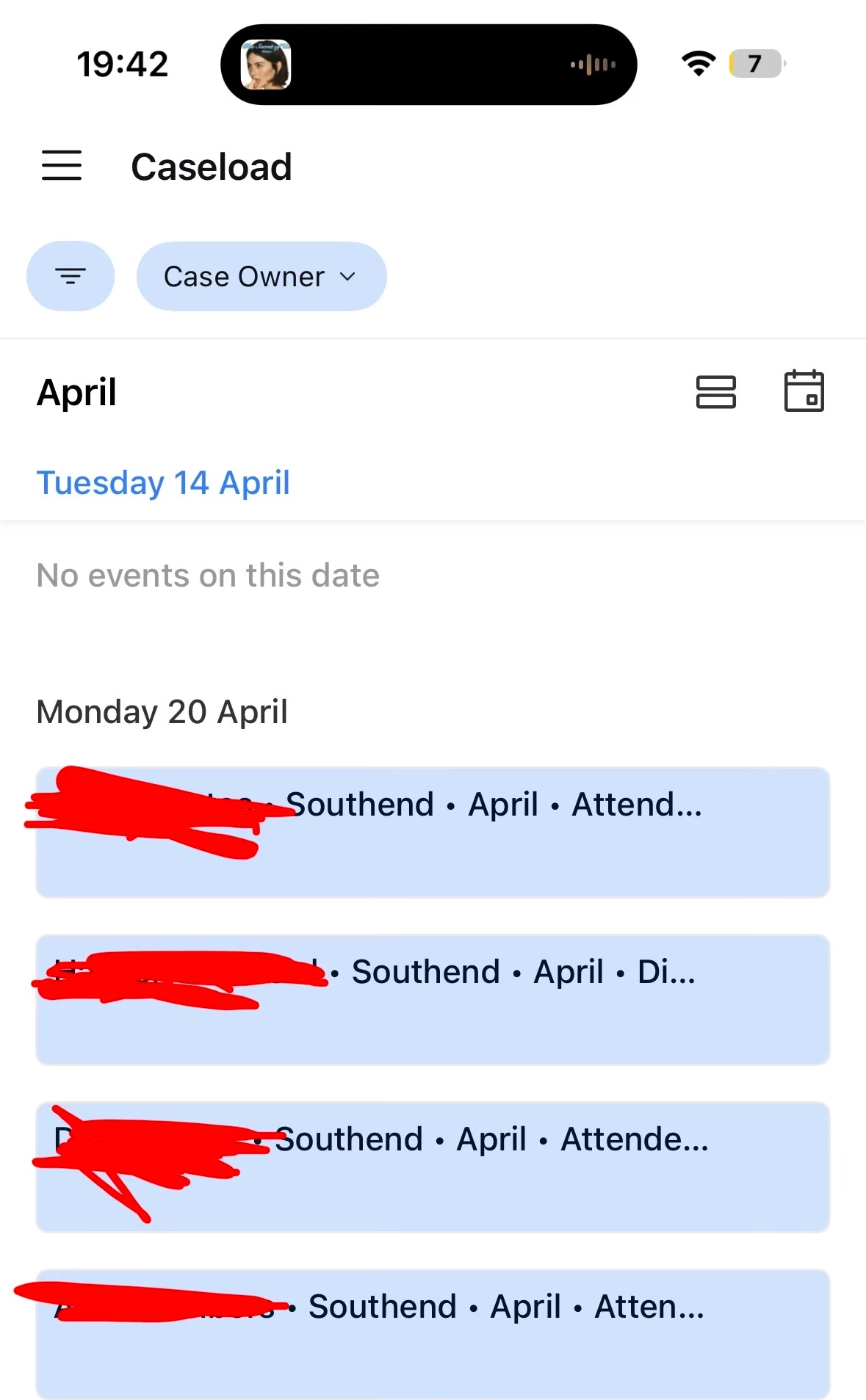 using calendar to manage service user caseload - the programme service users enrolled on take part in 6 sessions, we have 6 date fields on the calendar.