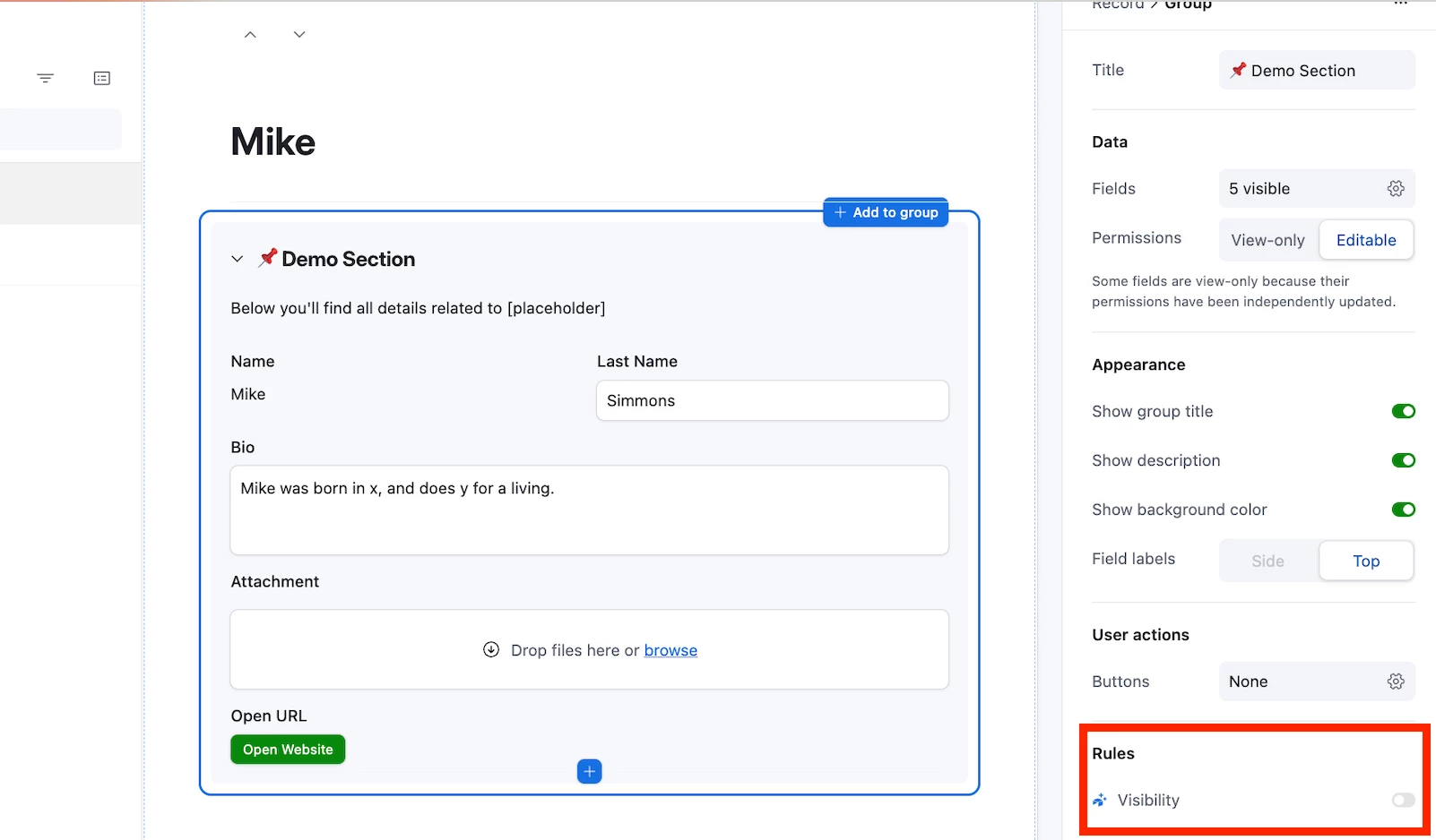 Is there any way to create collapsible sections or groups in Airtable Interfaces when building one from scratch?