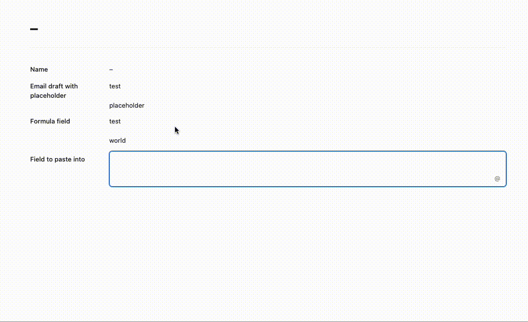I have a long text field (called ‘Email Draft with Placeholder’), and a formula field (called ‘Email Draft’) where I’m replacing a few placeholder key using REGEXREPLACE.