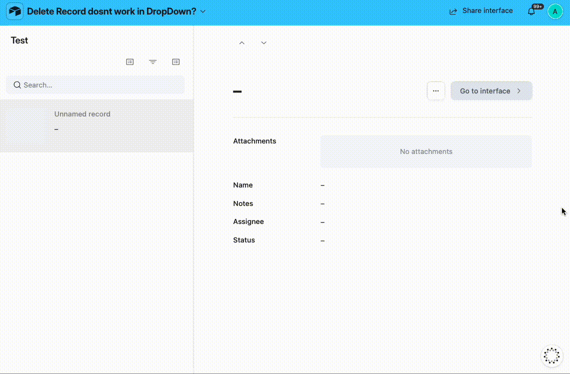 Did I miss something? Up until now, the button that allowed deleting a record was located in the dropdown menu. However, it doesn’t seem to work there anymore. It only triggers if I remove it from the dropdown and place it directly on the main page.
