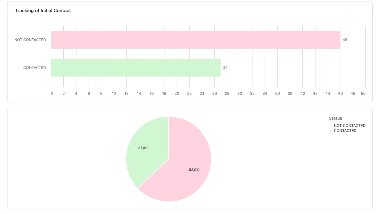 1. In my Interface dashboard, I'd like to be able to display the percentage of companies I got in touch with against the monthly goal of companies to contact. As of now, I visualized this as a bar chart, but I would like instead to visualize it as a progress bar.