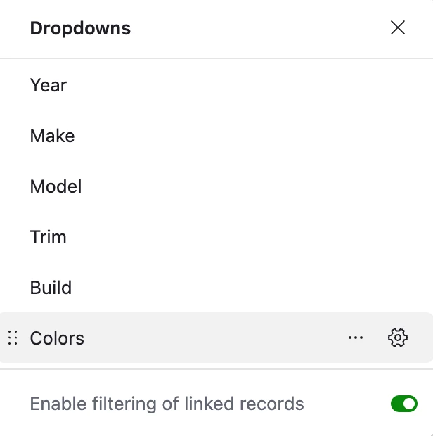 Hi everyone. I have built a database of car images that dynamically filters models down to by the make selected, the trim by the model selected, and so on. When I build out an interface the dynamic filtering functionality works as intended (if I select Audi in my dropdown on the interface, when I select my model filter it is automatically limited to Audi models.)