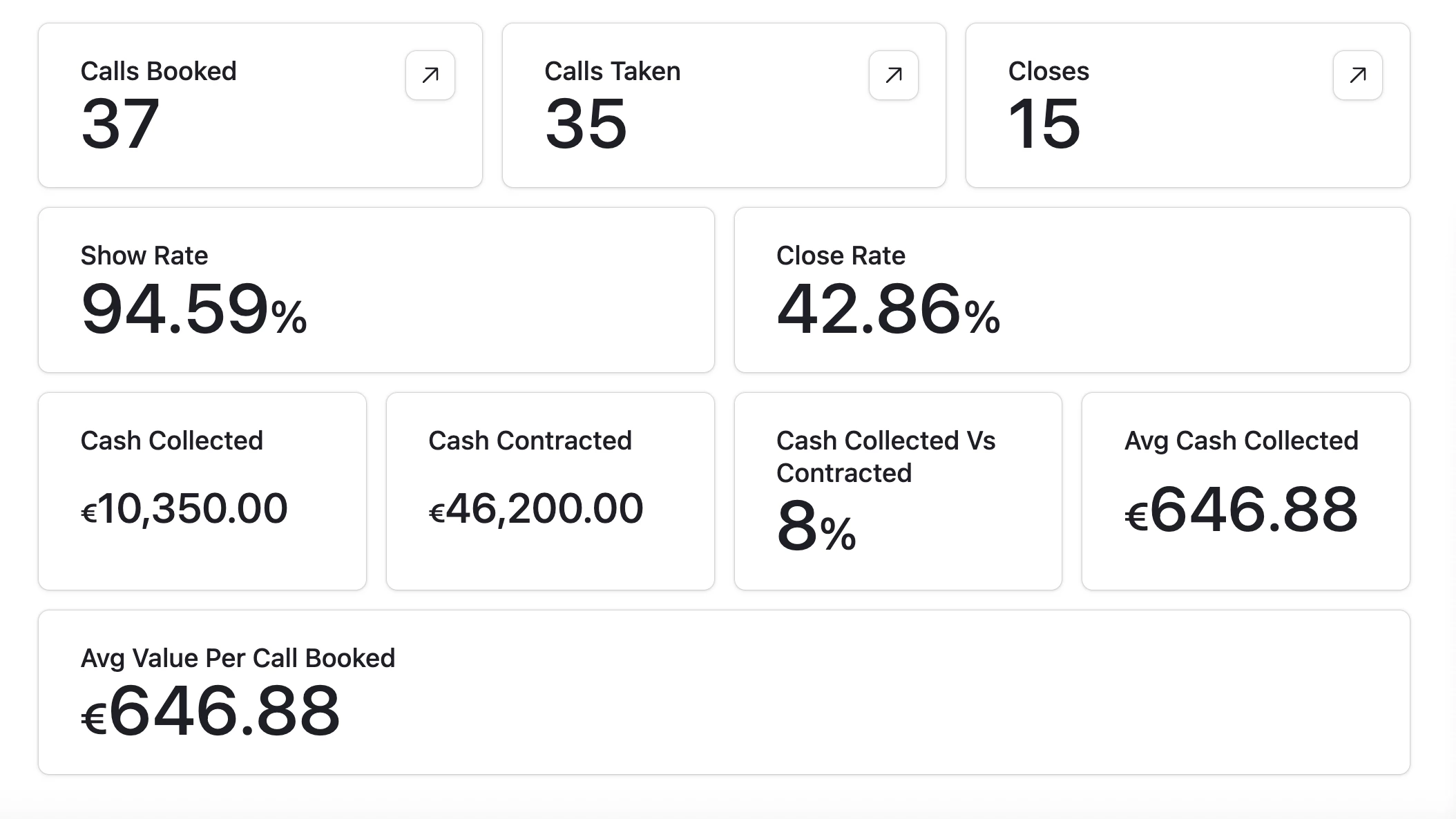 So here I need to see the average value of a call booked which is different than the avg cash collected per closed call. I want to see Total cash collected divided by total calls booked.