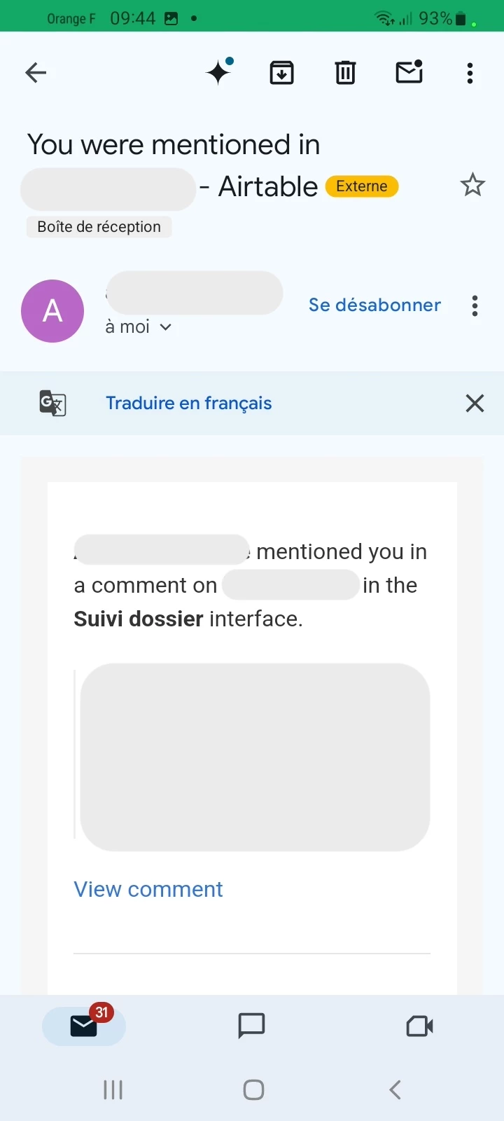 When someone sends a comment on an interface and adds an "@" to notify a user, the user receives an email with a hyperlink labeled "view comment."