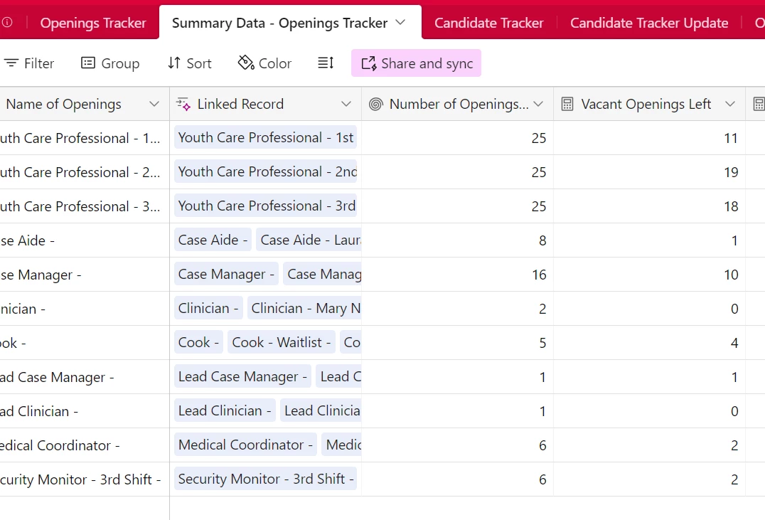 I am using a summary of data connected to a linked record to populate the dashboard. The Youth Care Professional 3rd shift seems to be filtering as two numbers separated by a Comma. I am not sure why this is happening there and not with the others. The fields have the same conditional formatting for all the fields to the right of linked record. Only this one seems to be noting as 2 numbers.
