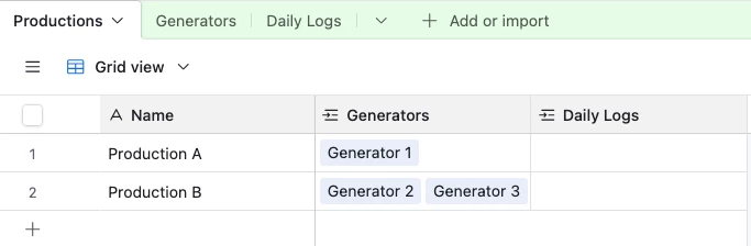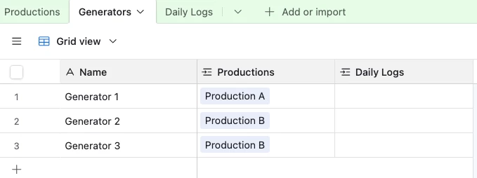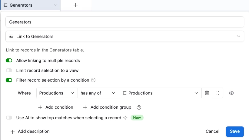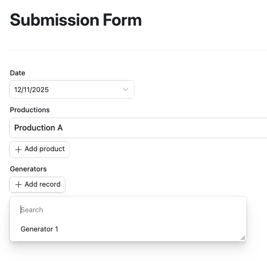 Users should select a Production first, then see only the Generators linked to that Production in a Record Picker (for a Daily Log interface).