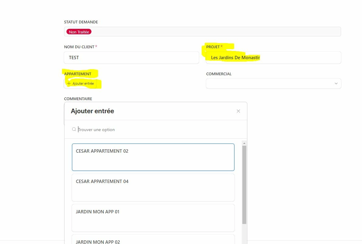 logically in the form when we choose the project we must display in the apartment field only the apartments which correspond to this project