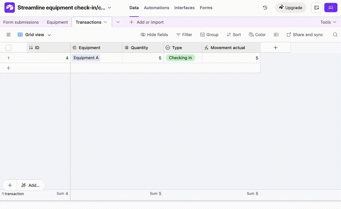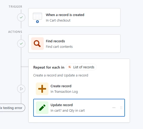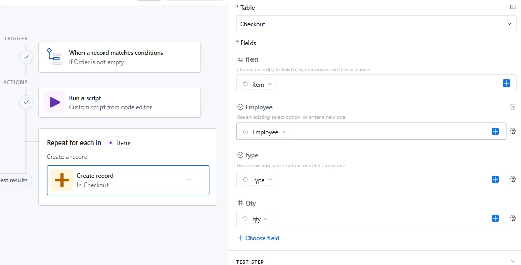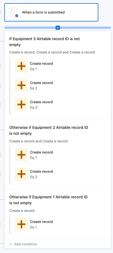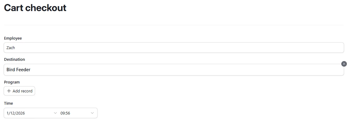 This is fine for checking out a single inventory item, but it’s rather slow and cumbersome for checking out multiple items at once. Think someone loading a truck with a barcode scanner. I’ve seen Fillout recommended multiple times here and gave that a shot, but wasn’t very happy with the results. I was able to get multiple items checked out on the same form, but it required me to make another linked table of inventory items and quantities and for users to create a new record for every item they were checking out. This was only slightly quicker than submitting the native Airtable form multiple times, but it was much more complex.