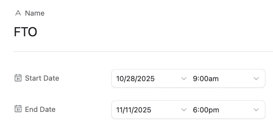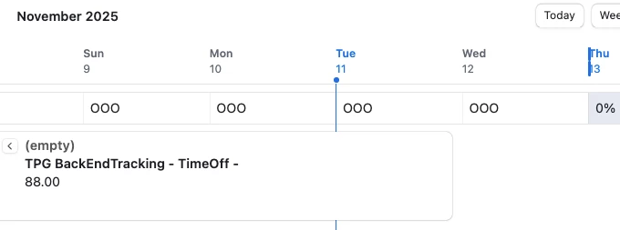 - When an End Date on Time Off is set to any other time then 12:00am it marks the following day as also being Time Off (OOO).