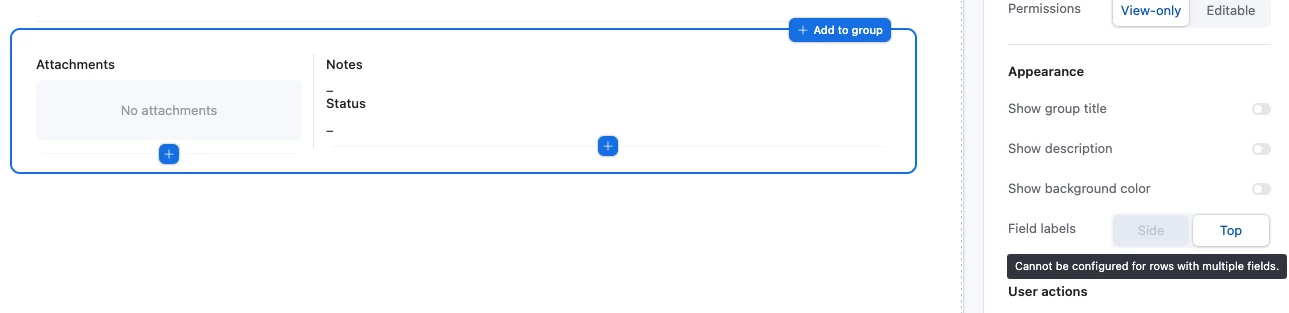I’ve successfully positioned the Attachment field (Profile Picture) on the left, and I can place other fields (such as “Contact Type”) to its right.