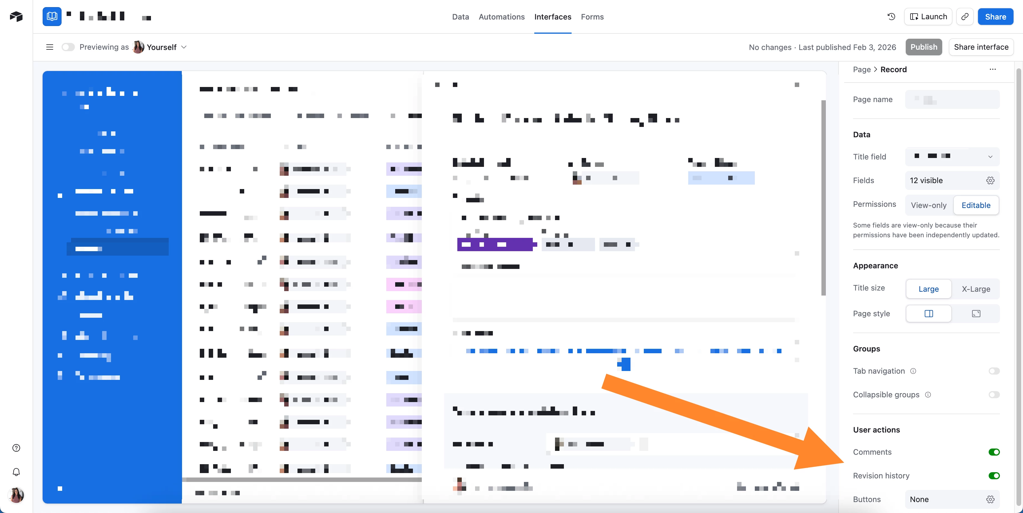 Am I missing something? Tell me there is a secret. Right now the Interfaces can show the record’s Activity Feed but not the Revision History ? The only place I can show it is if I use the side panel to open a linked record, those you can have the revision history at the bottom but that is it!! As far as I know.
