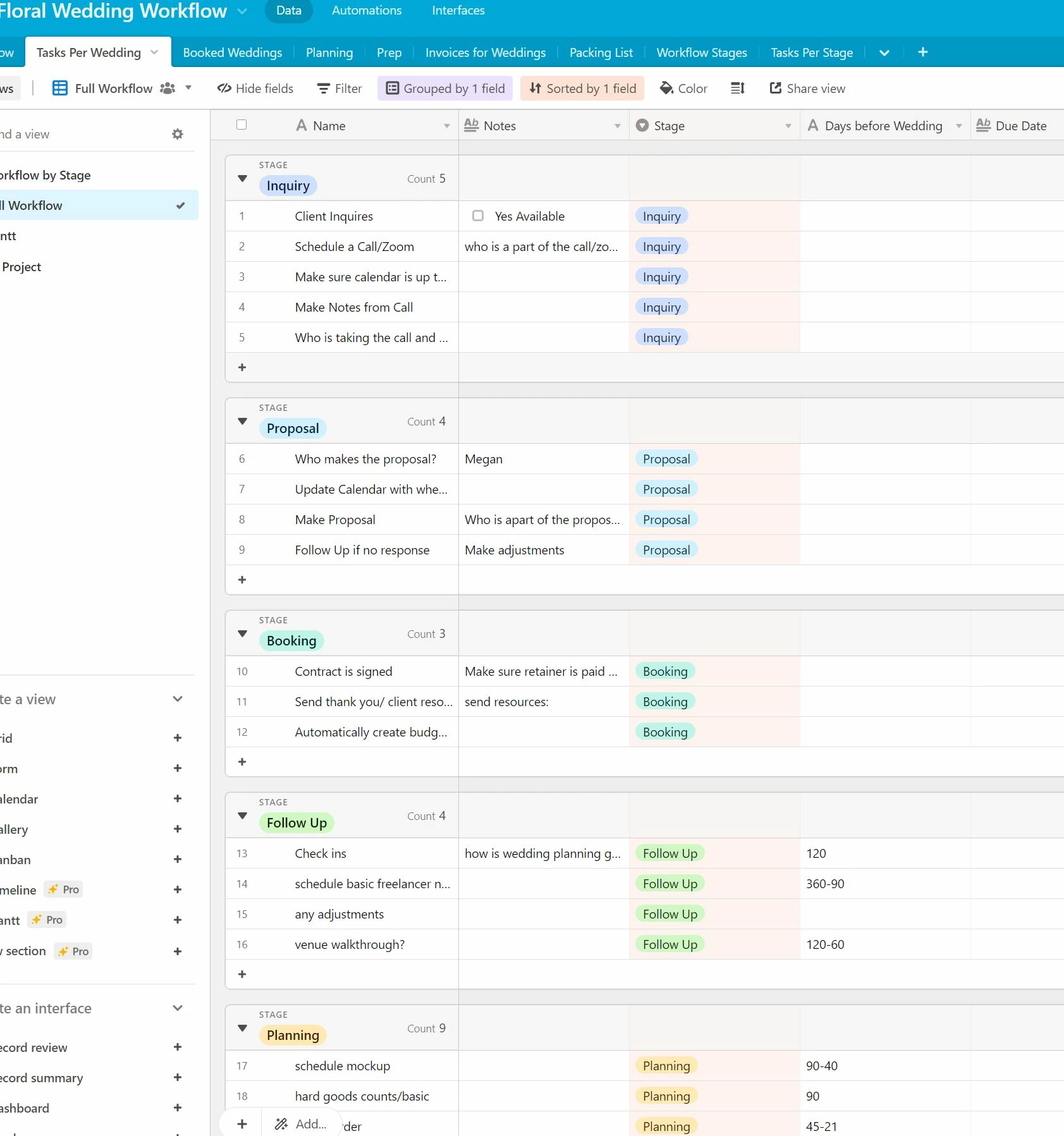 Each phase has a bunch of different tasks. For example, the "Prep" stage has each of these tasks:
