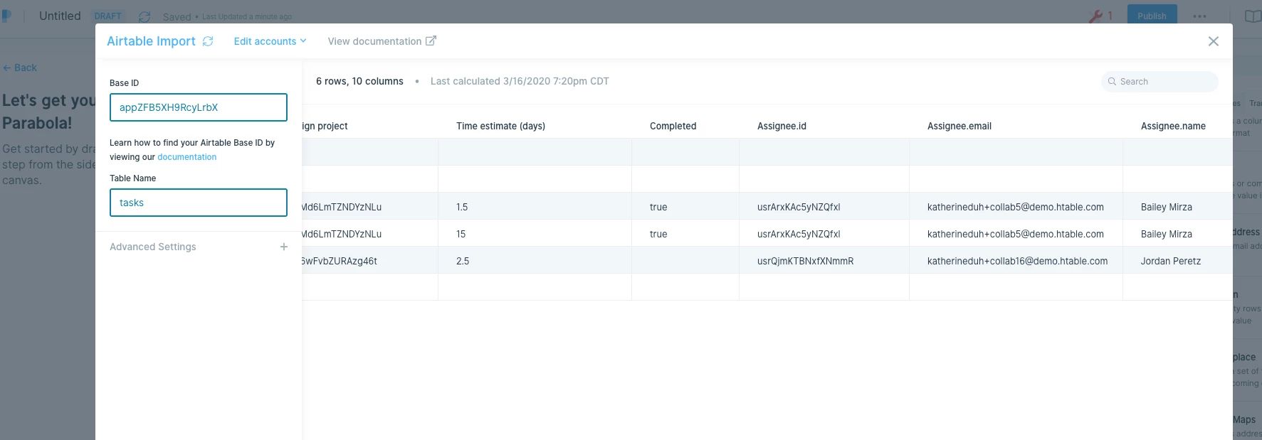 I’ve been able to pull bundles out of airtable using the Airtable module. I’ve been able to pass those through a filter, to select those bundles with today’s due date that haven’t been marked submitted. I’ve been able to use the Table Agregator module to recombine the bundles into a single table.