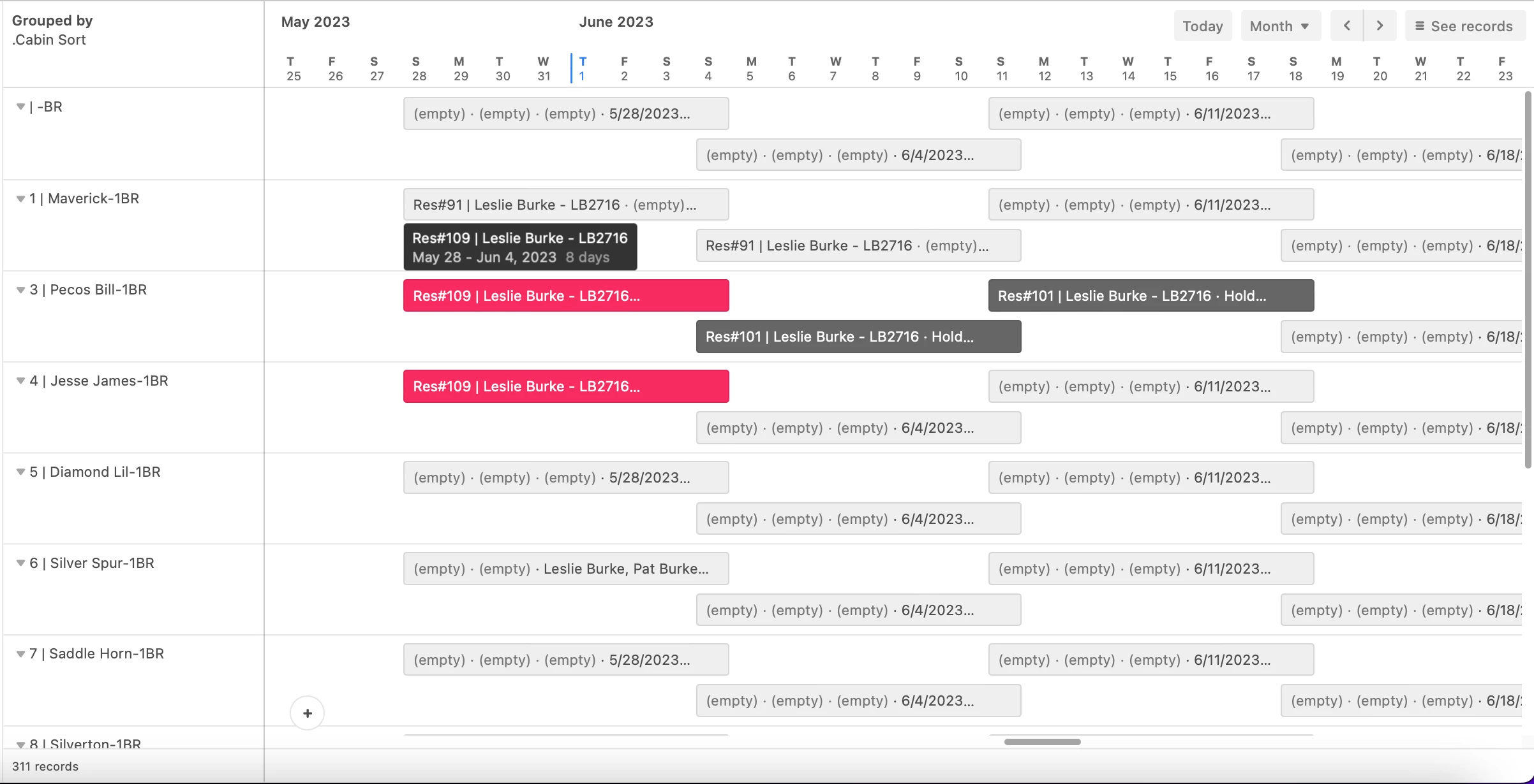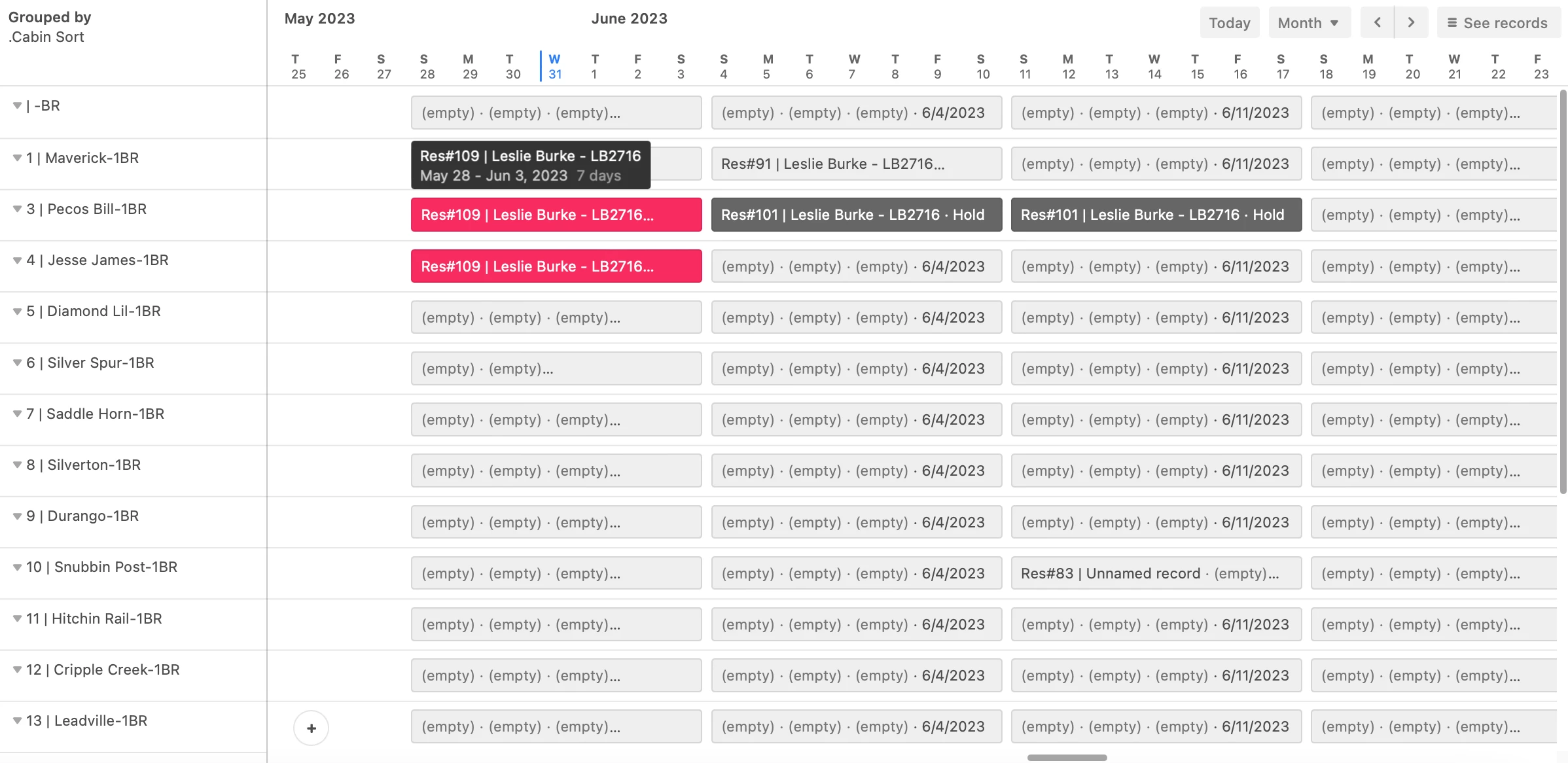 Currently the timeline view allows the timeframe visible to be at the day level, and includes hourly granularity at this level. It would be helpful to have hourly granularity on the timeline view, also when viewing a week, 2 week or month timeframe. For example, we built a guest management and reservation system for our client. But in order to display the reservations in a single line by cabin on the week, 2 week or month timeframe on the timeline view we have to have the end date be one short day of the actual departure. The alternative is to use the actual departure date, which is also the arrival date of the incoming reservation. If we use the actual departure date, the reservations are forced onto two lines because they overlap at the day level. If we could have hourly granularity at the week, two week and monthly level, they would not overlap because checkout time is at 11am on the day of departure and time of arrival is 4pm on day of arrival. ..