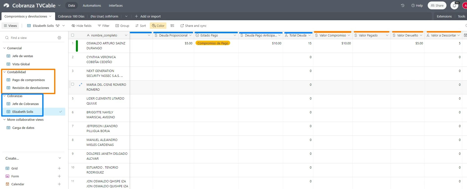 3) Different departments interact in the same table ("Collections" and "Accounting")
