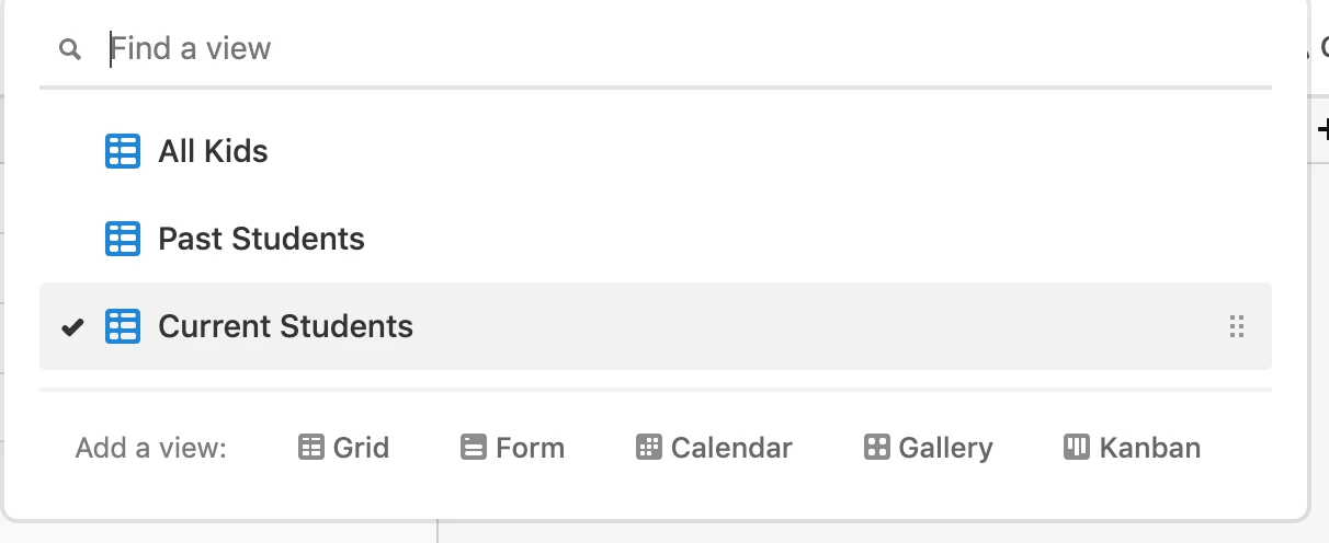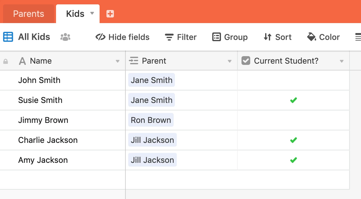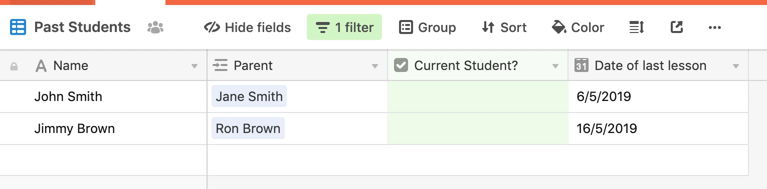 Hi @Piano_Sensei - I don’t think you need a new table for past students, just an attribute on the students table to indicate past or present (e.g. a checkbox). You can then create two views on this table - one for current students and one for past students, using a filter on each to show the correct students.