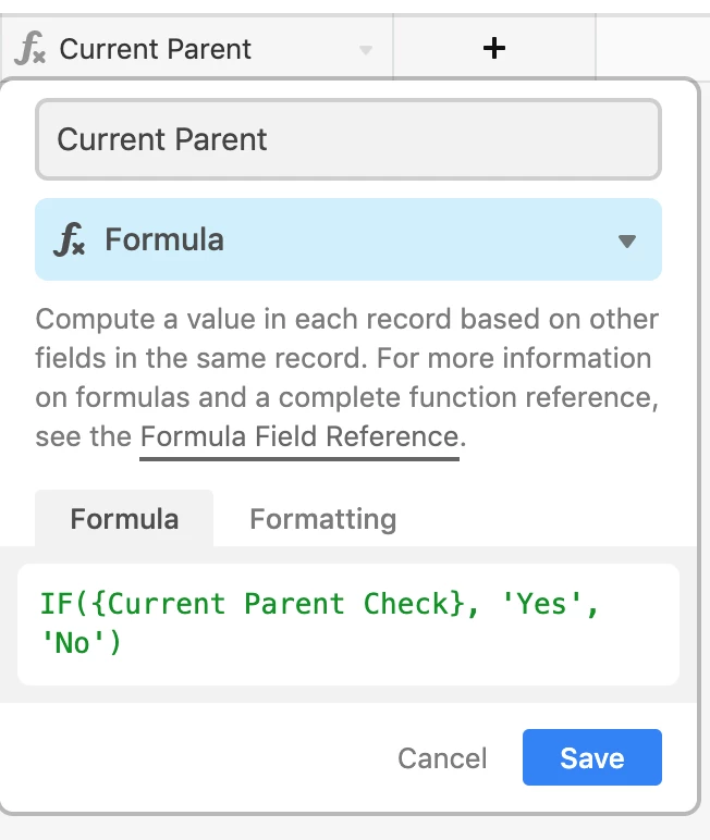 Then, because this might have any number of ticks, I created another field (formula) to distil this to a simple yes/no: