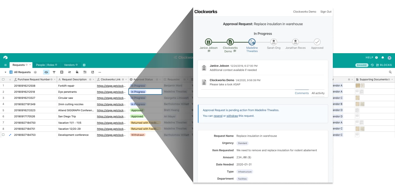 Thanks for all of the feedback from our initial release of our Approvals product built for Airtable! We’ve improved the approval logic options and flow and streamlined the integration process between our product and Airtable. Please take a look at our second version: getclockworks.com/products/approvals