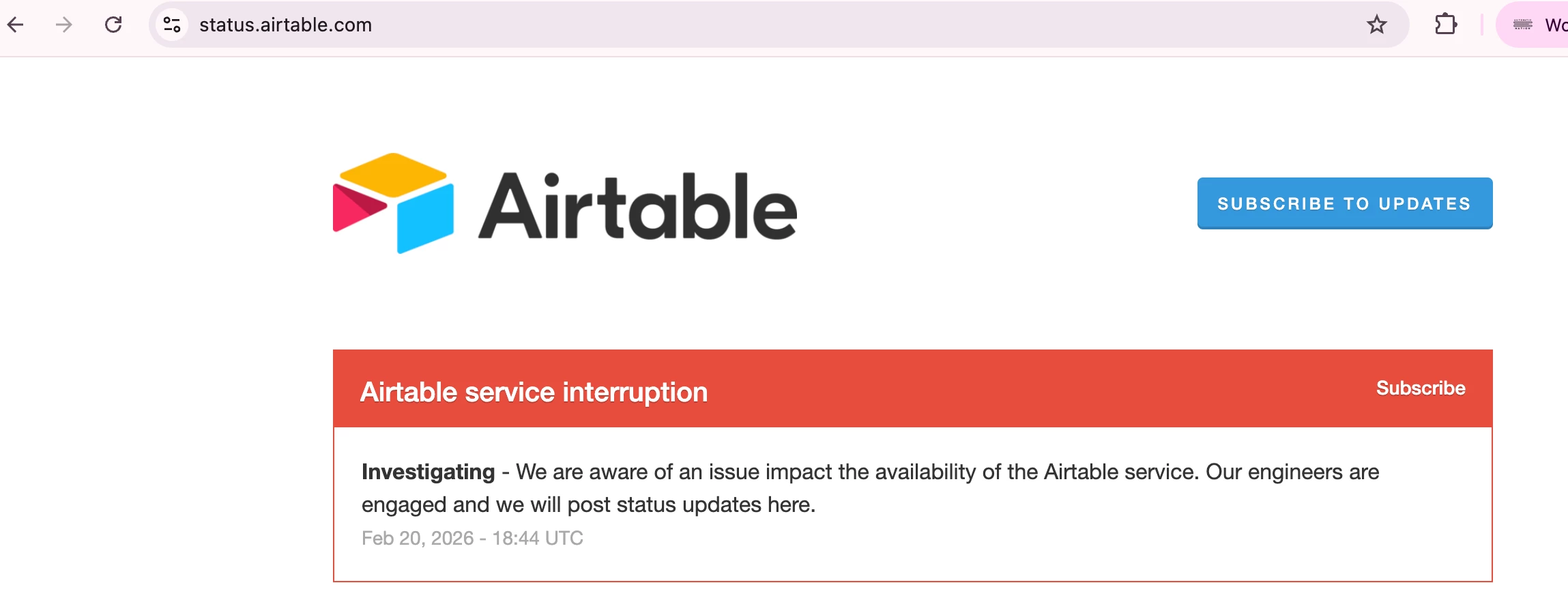 I cant load any of my Airtable Page.