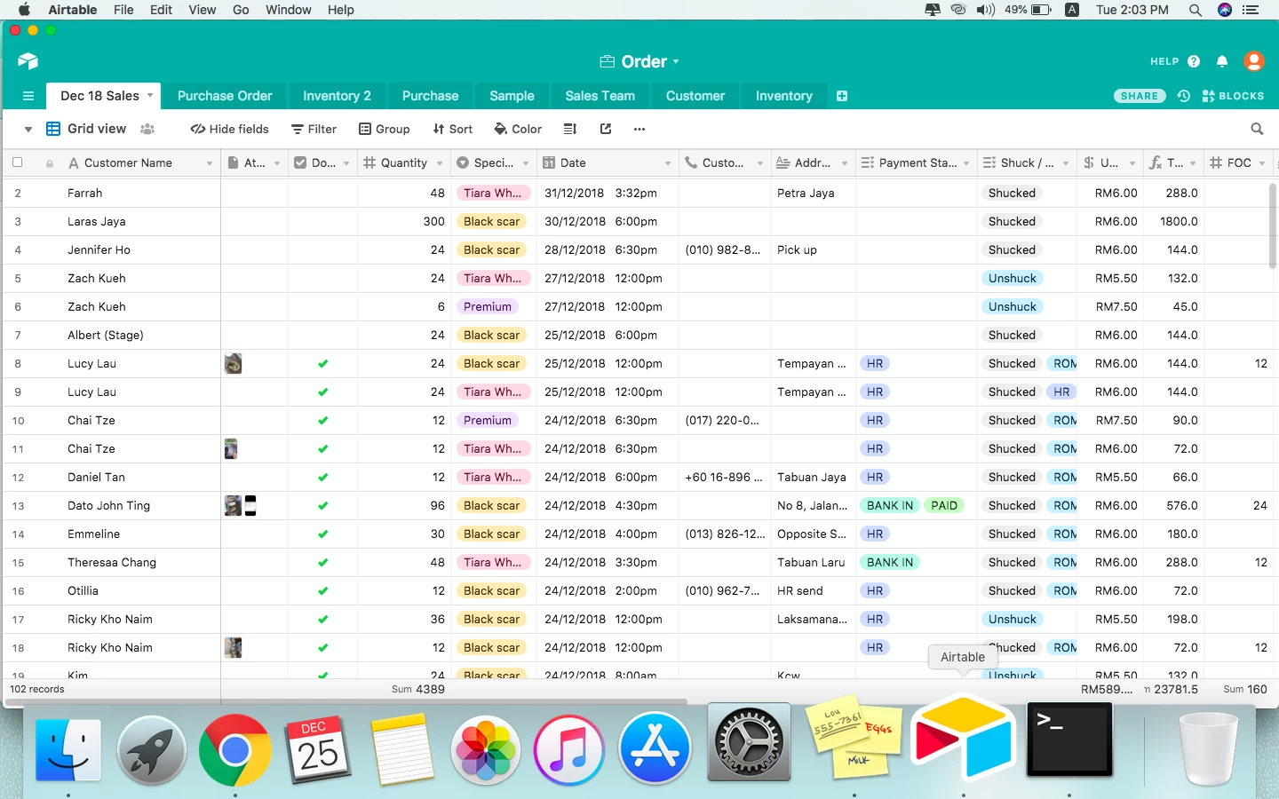 I need to subtract the inventory from my Dec Sales table which consist of Quantity and Type.