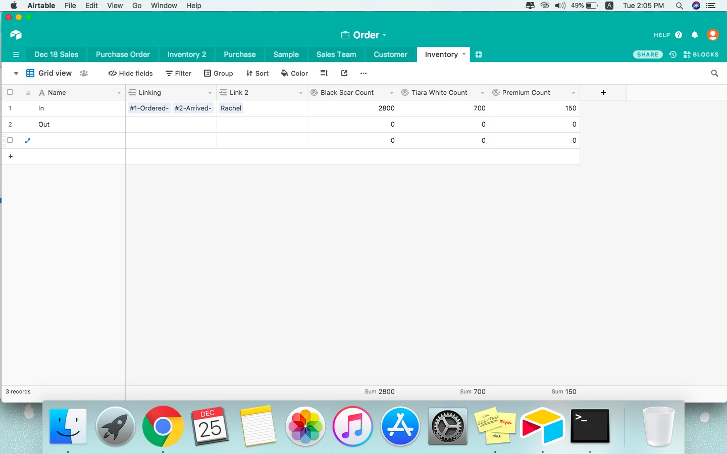 The result will be a column with only the quantities that are “Done”/“Out”. Then on your Inventory table you can use a roll-up to sum those quantities and subtract from the total.