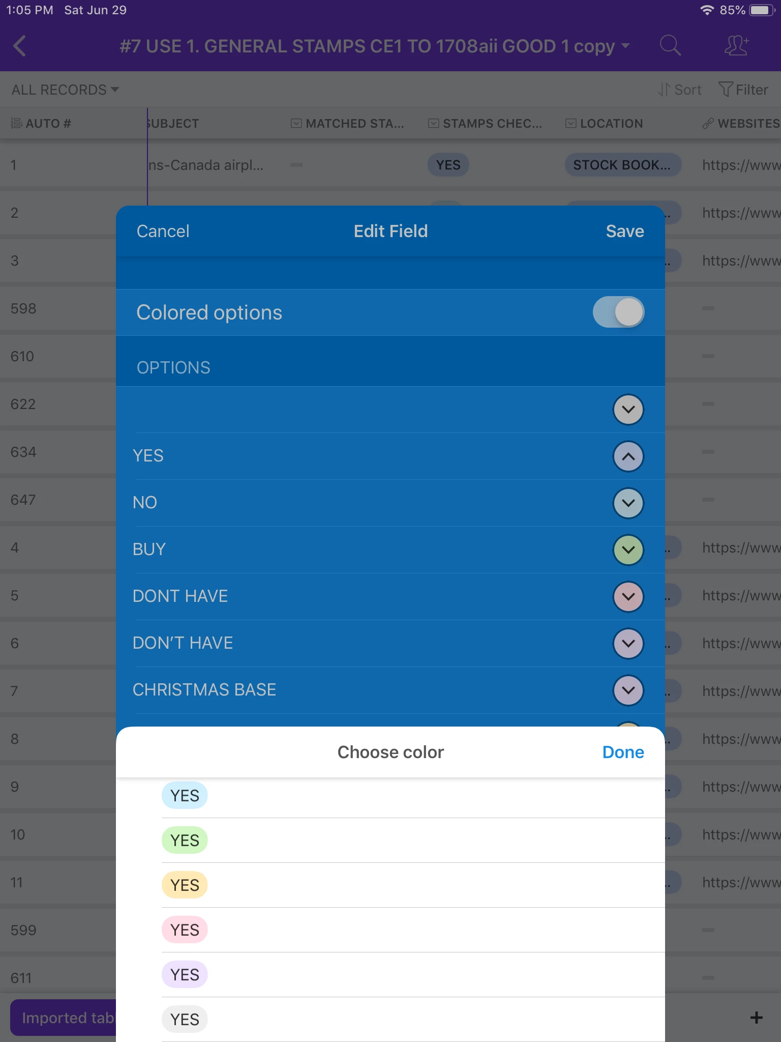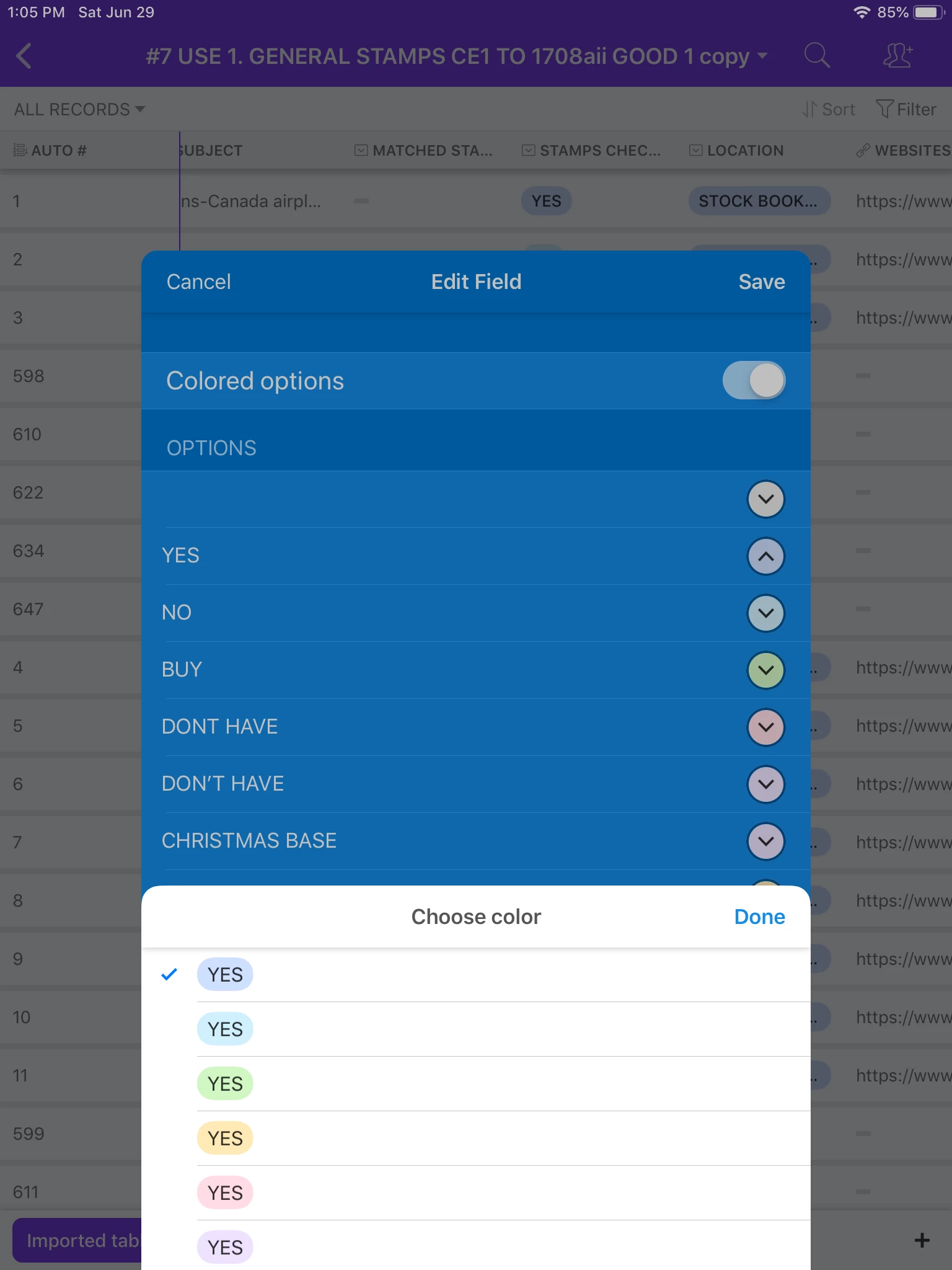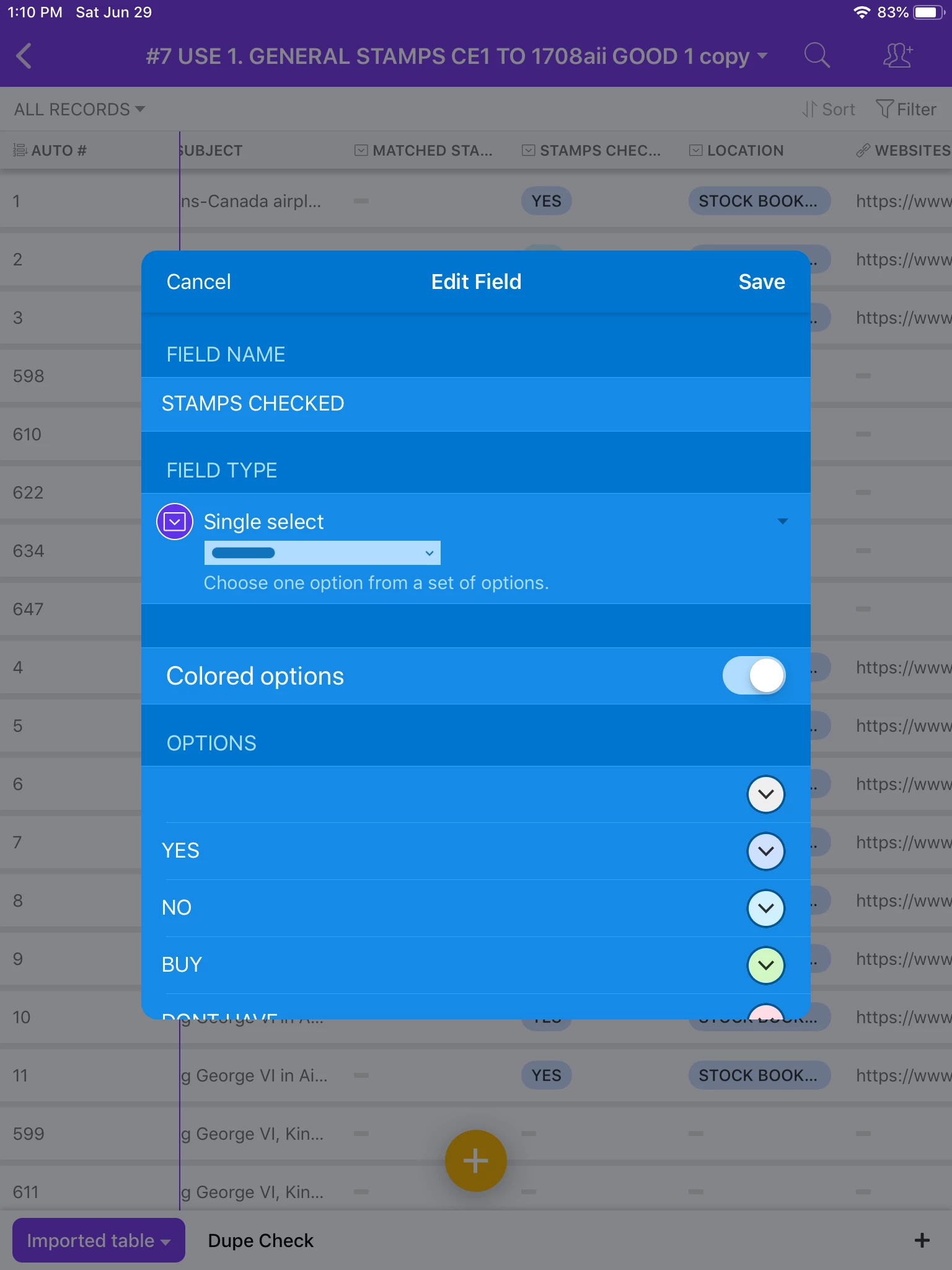 For a bit more information, as you know, Single select option is for choosing one item, per record, but there is Multiple select option, where you can choose more them one item, per record. The colours are the same for both field options.