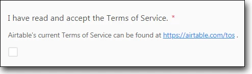 Here’s how it looks using a checkbox field and Airtable’s own Terms of Service as the target.