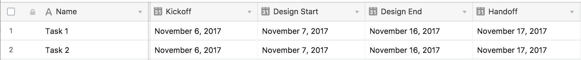 Note that Task 1 and Task 2 dates are related to the record (above). The colors are pulled in from the “status” in the Kanban view, all of this works pretty well and I’m fairly happy but I’d like to make the calendar view colors (per record) even clearer. I’ve searched high and low and haven’t found a workaround here.