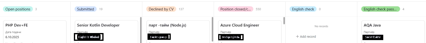 I work as a Staffing Manager for an outstaffing IT company. We use airtable to manage information on requests from our clients to IT specialists.