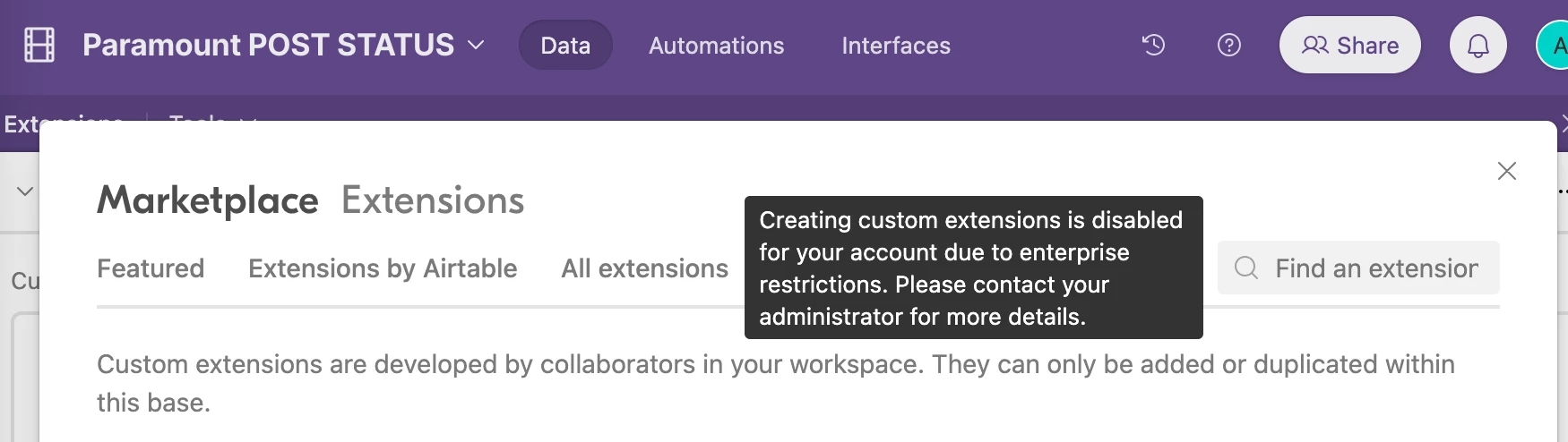 Hi community, when I try to add extension I get this tooltip. How to solve the problem for this dashboard? (I can still add extensions to other dashboards)