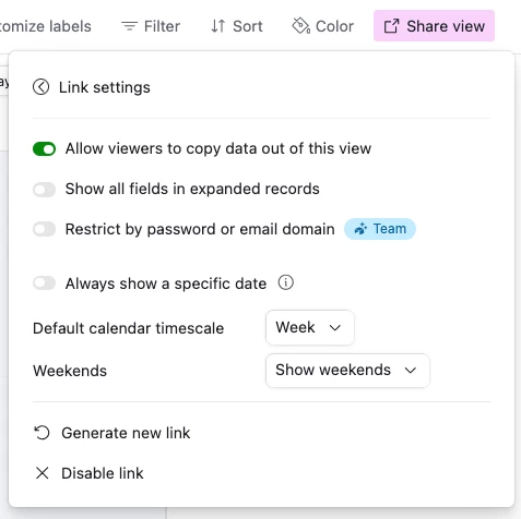 Hi! I’m trying to embed a calendar view, but the data view isn’t matching the embed view: