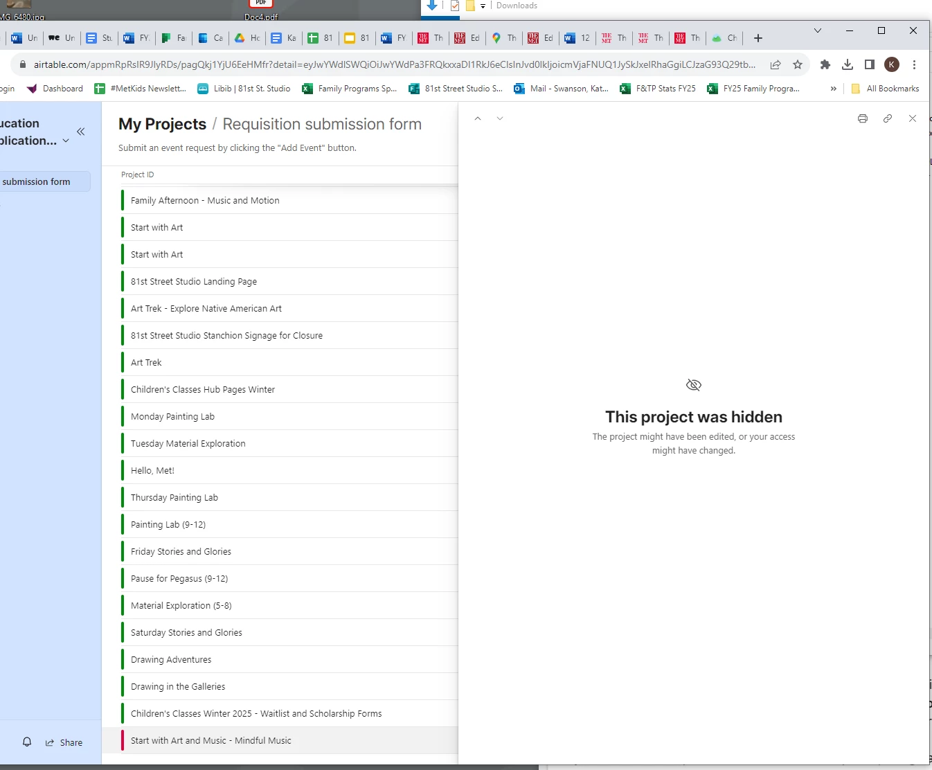 Certain users in my organization are using an interface to submit work order requisitions and getting a random and sporadic message on some requisitions mid-way through the submission, but not all users and not all the time. The message reads "Project Hidden, The project might have been edited, or your permissions changed." Any ideas what may be causing this or anyone else seen this message before?