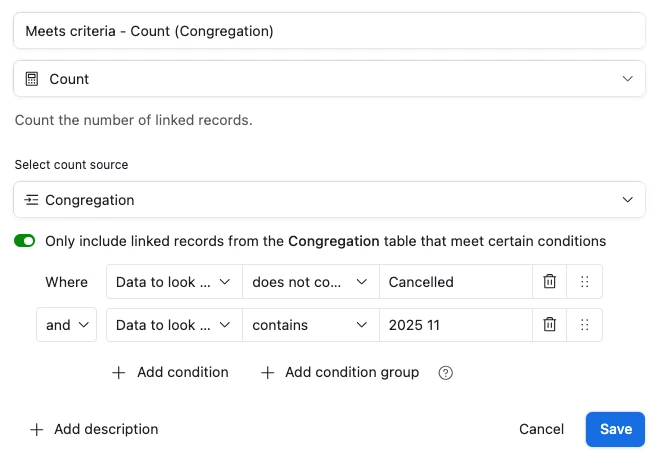 The problem i’m running into is that some People have linked Service Records that contain “2025 11” AND ALSO records that contain “Cancelled 2025 11”. And every time i try to filter, it either brings back two records (the “2025 11” record AND the “Cancelled 2025 11”) or it brings back zero records.
