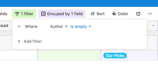The view filter for the Collaborator field only lets me choose a collaborator to show, and I can’t find a way to show just the fields without a collaborator.