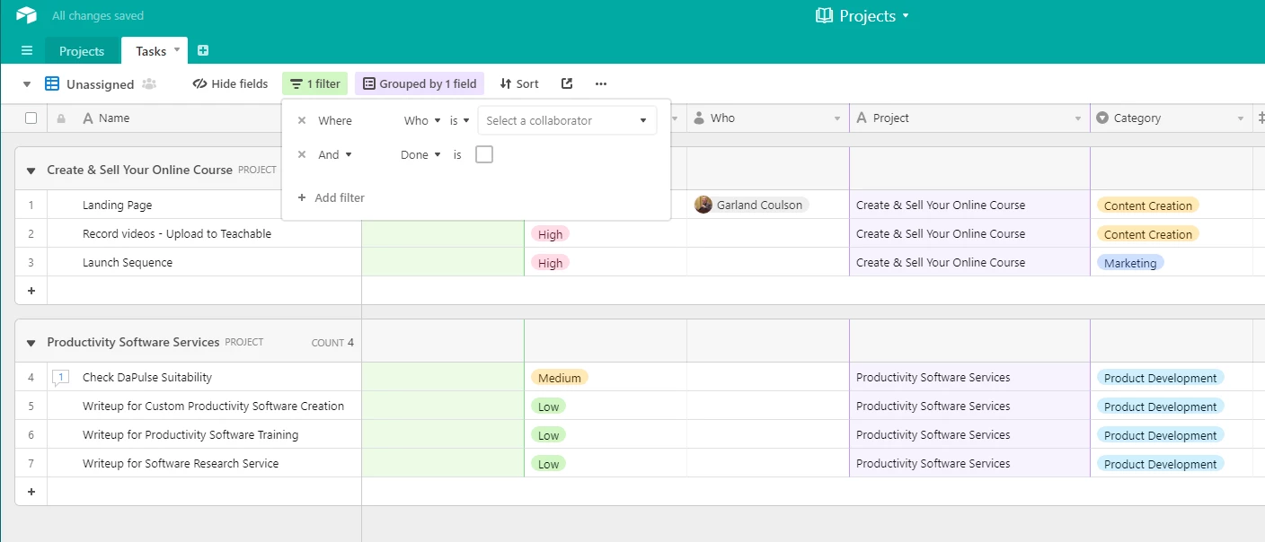 I am using the Collaborator option to assign tasks to my team. I would like to set up a view so that I can easily find all the tasks that are not assigned yet to anyone.