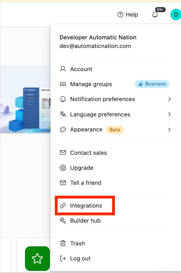 - The “Integrations” tab that